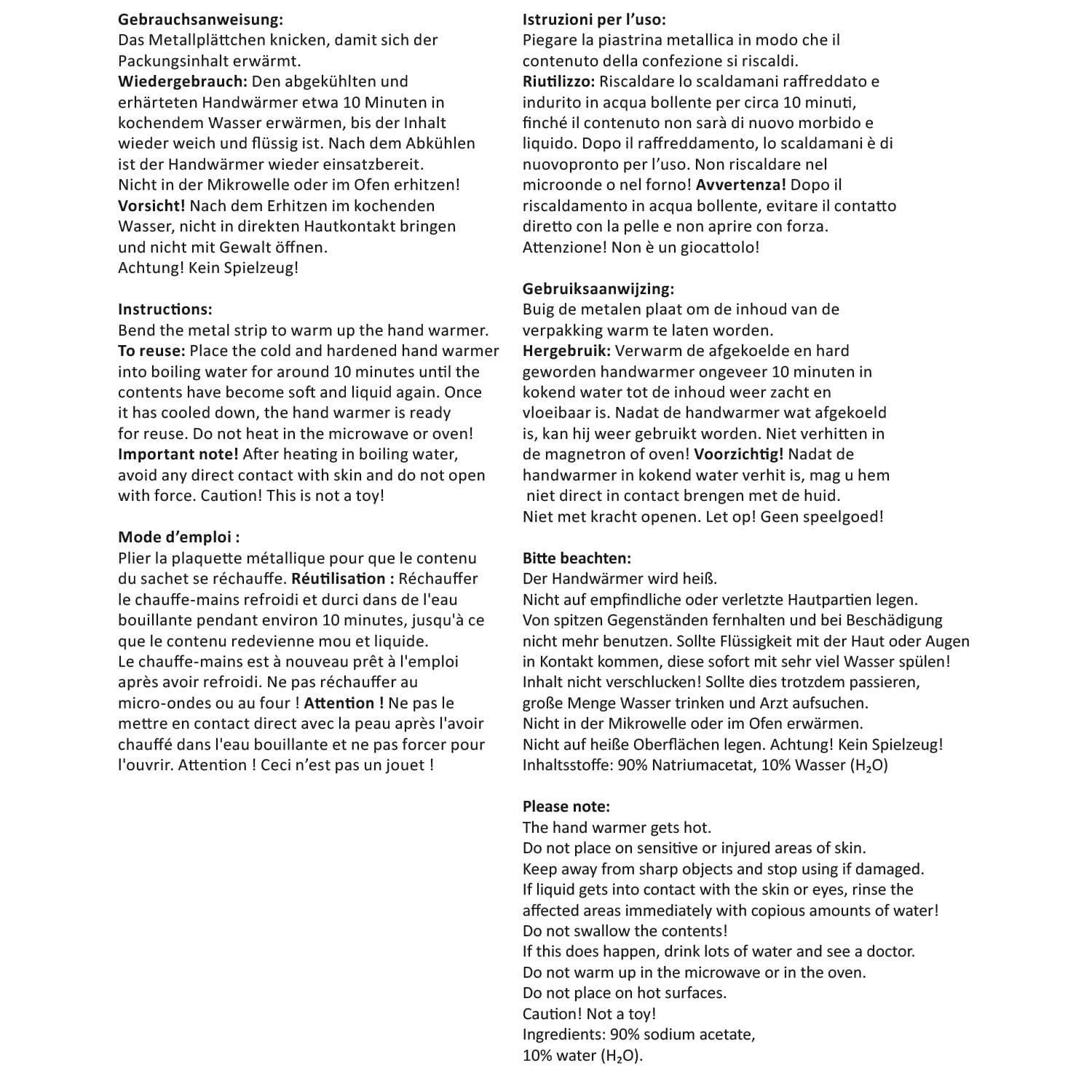 | Materialdetails | Hülle aus PVC, Flüssigkeit aus Natriumacetat-Trihydrat und Wasser |