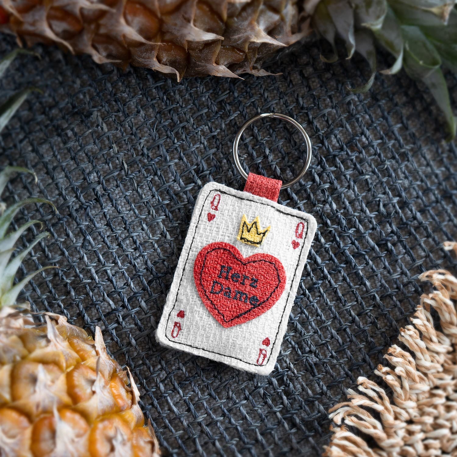• Schlüsselanhänger in Spielkarten-Form mit Motiv: »Herz Dame«