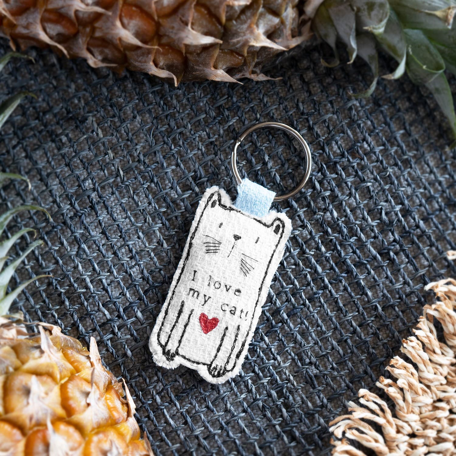 • Schlüsselanhänger in Katzenform mit Motiv: »I love my cat!«