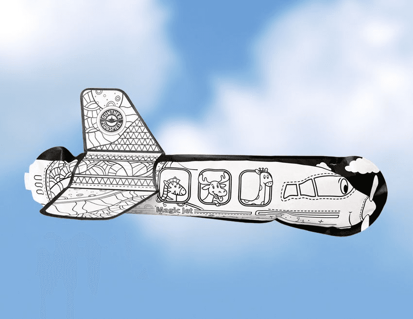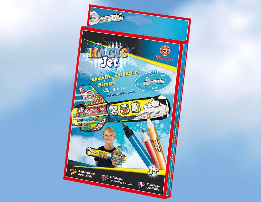 Der MAGIC JET von Günther Flugspiele ist das perfekte Kreativ‑Spielzeug für kleine Künstler und Flugzeugfans! Dieses innovative aufblasbare Ausmalbild kombiniert Malspaß und Spielaction in einem einzigartigen 3D‑Jumbojet, der zum Ausmalen, Aufblasen und Spielen einlädt.