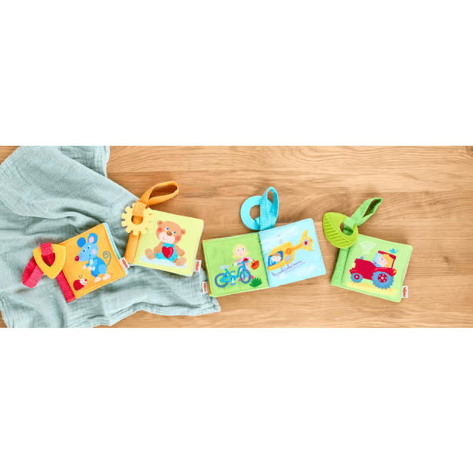 Jetzt wird’s richtig niedlich: Die vielen putzigen Tierfreunde warten nur darauf, endlich von ihren Babyfreunden entdeckt zu werden! Das HABA Buggybuch Tierfreunde kann dank praktischer Klettschlaufe überall dort befestigt werden, wo es gerade gebraucht wird: ob Gitterbett, Babyschale, Buggy – ob zuhause oder unterwegs. Mindestens genauso praktisch ist das angehängte Beißelement, das Linderung verschafft, sobald die ersten Zähne kommen. Oje, es ist ein Fleck auf die weichen, robusten Seiten gelandet? Kein Problem, denn das HABA Buggybuch Bauernhof kann bei 30 Grad in der Waschmaschine gewaschen werden.