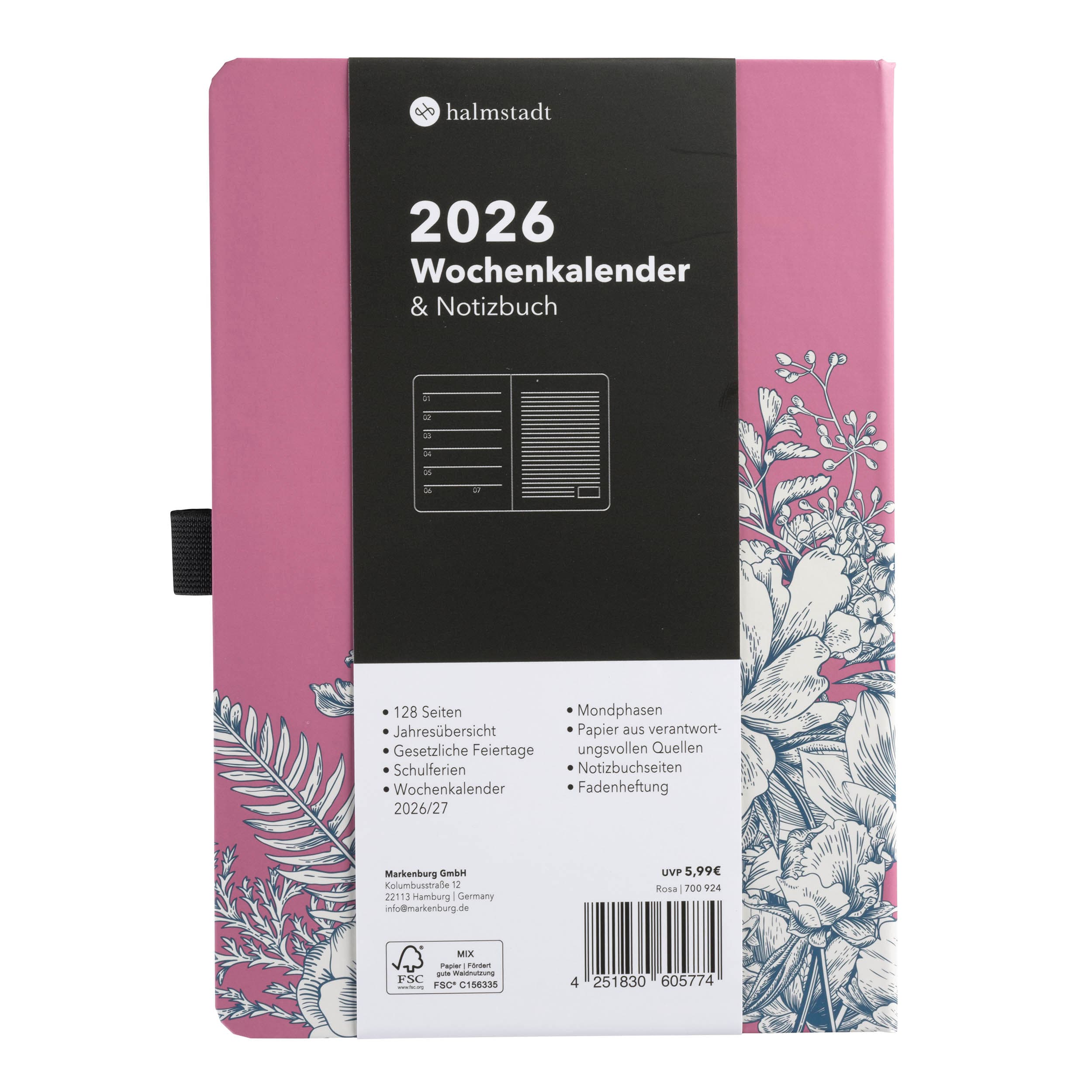 halmstadt 2026 Wochenkalender & Notizbuch A5 Altrosa