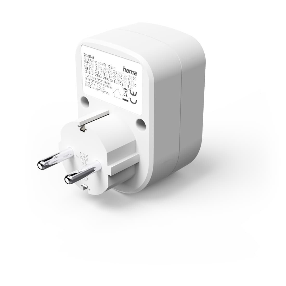 HAMA Mehrfachstecker 3er f. Steckdose, 1 USB-C PD, 1 USB-A, 1 Schutzkontakt, 30W, weiß