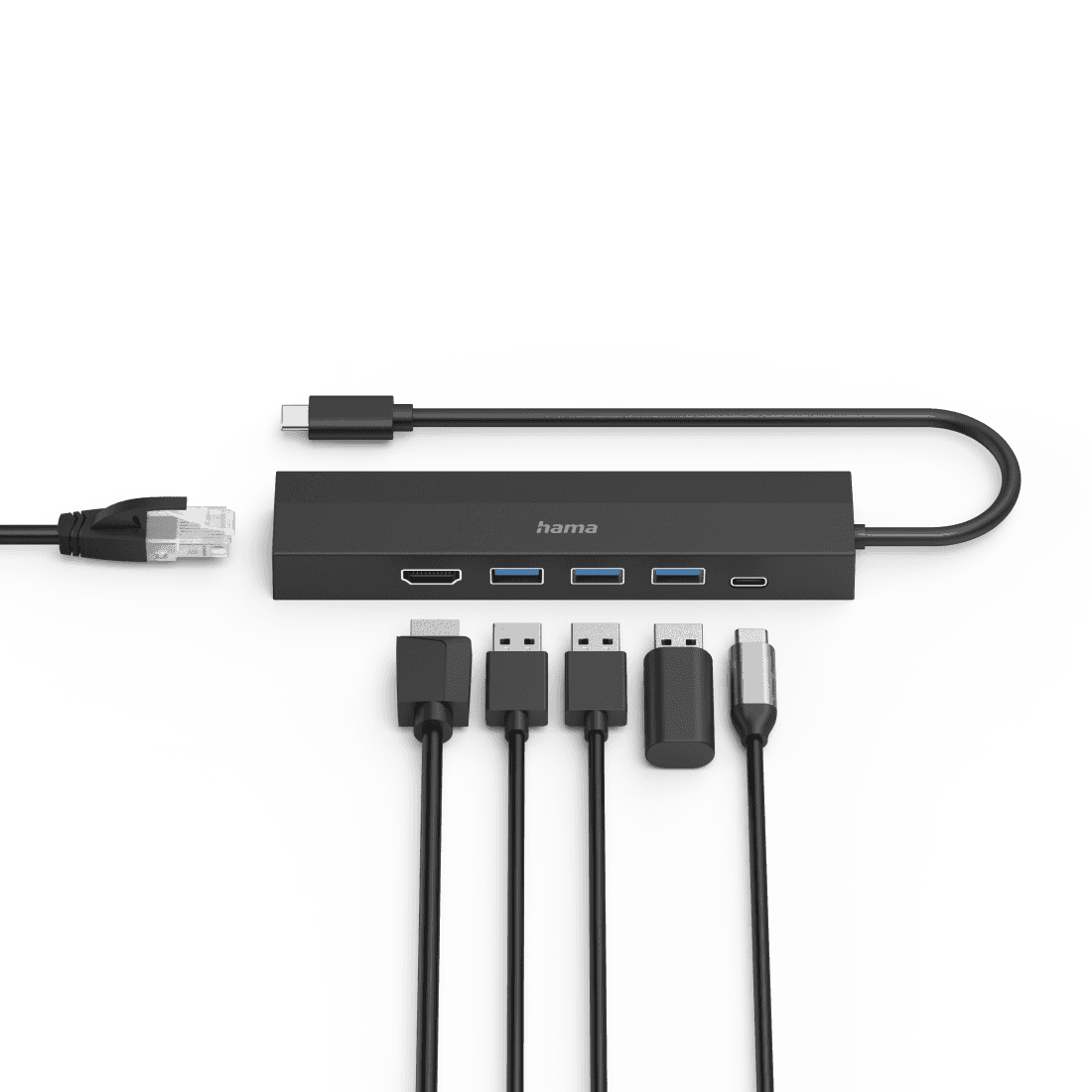 HAMA USB-C-Hub, Multiport, 6 Ports, 3x USB-A, USB-C, HDMI™, LAN/Ethernet