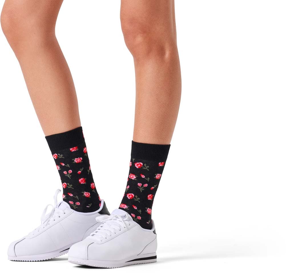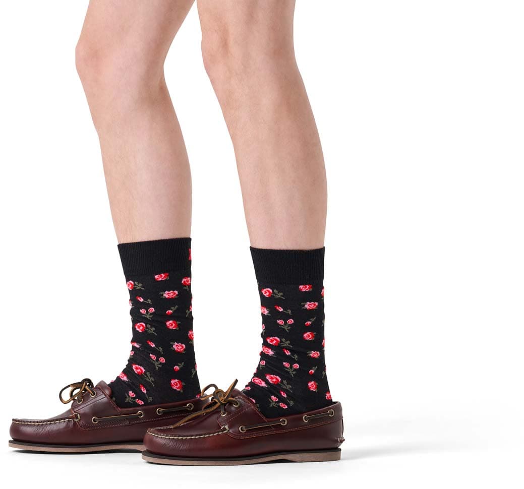 Liebe liegt in der Luft! Die Roses Socke bringt mit zarten, rosa Blüten auf elegantem Schwarz einen Hauch Romantik an deinen Fuß. Magst du’s verspielt, charmant und ein bisschen verträumt? Dann ist diese Socke genau dein Match! Zeig Stil und Herz—ob als Eyecatcher zum Date oder als kleiner Flirt im Alltag.