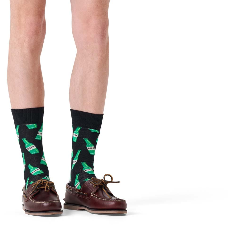 Hoch die Flaschen – hier kommt die Bier-Socke! Mit ihrem fröhlichen Muster aus aufgereihten Bierflaschen sprudelt sie nur so vor guter Laune und bringt garantiert jedes Gesicht zum Strahlen. Zeig allen, dass dein Herz für Hopfen schlägt und du für jeden Spaß zu haben bist. Egal ob Kneipenabend, Grillparty oder gemütliches Chillen mit Freunden – diese Socke ist dein Ticket zur besten Stimmung.