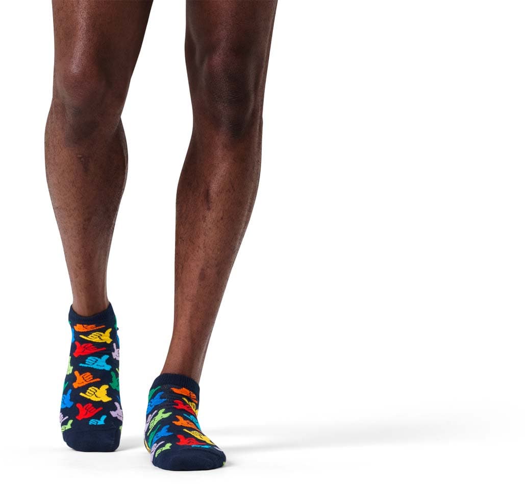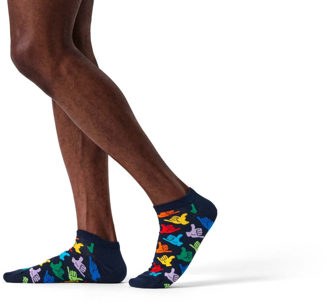 Surf auf der Spaßwelle mit unseren Hang Loose Low Socks! Das coole Shaka-Handzeichen bringt echte Aloha-Vibes an deine Füße und zaubert dir garantiert ein Grinsen ins Gesicht. Diese bunten Socken sind deine Einladung, einfach mal locker zu lassen und zu zeigen, wie lässig du bist. Der smarte Low-Cut und das auffällige Design passen zu Strandtagen genauso wie zum nächsten Stadtbummel. Ein echter Hingucker mit Gute-Laune-Garantie!