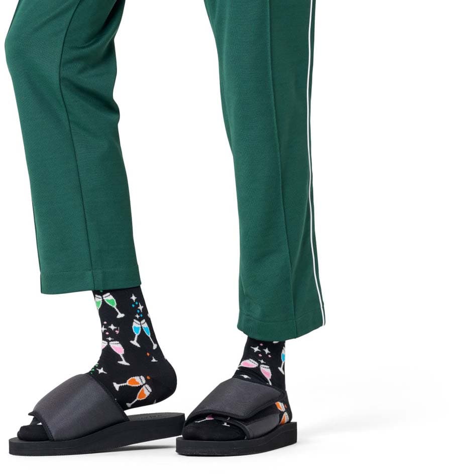 Feiere stilvoll mit unserer Cheers-Socke, die mit anstoßenden Gläsern auf einem eleganten schwarzen Hintergrund gestaltet ist. Sie ist perfekt als Geschenk oder um deinem Outfit eine lustige Note zu verleihen.