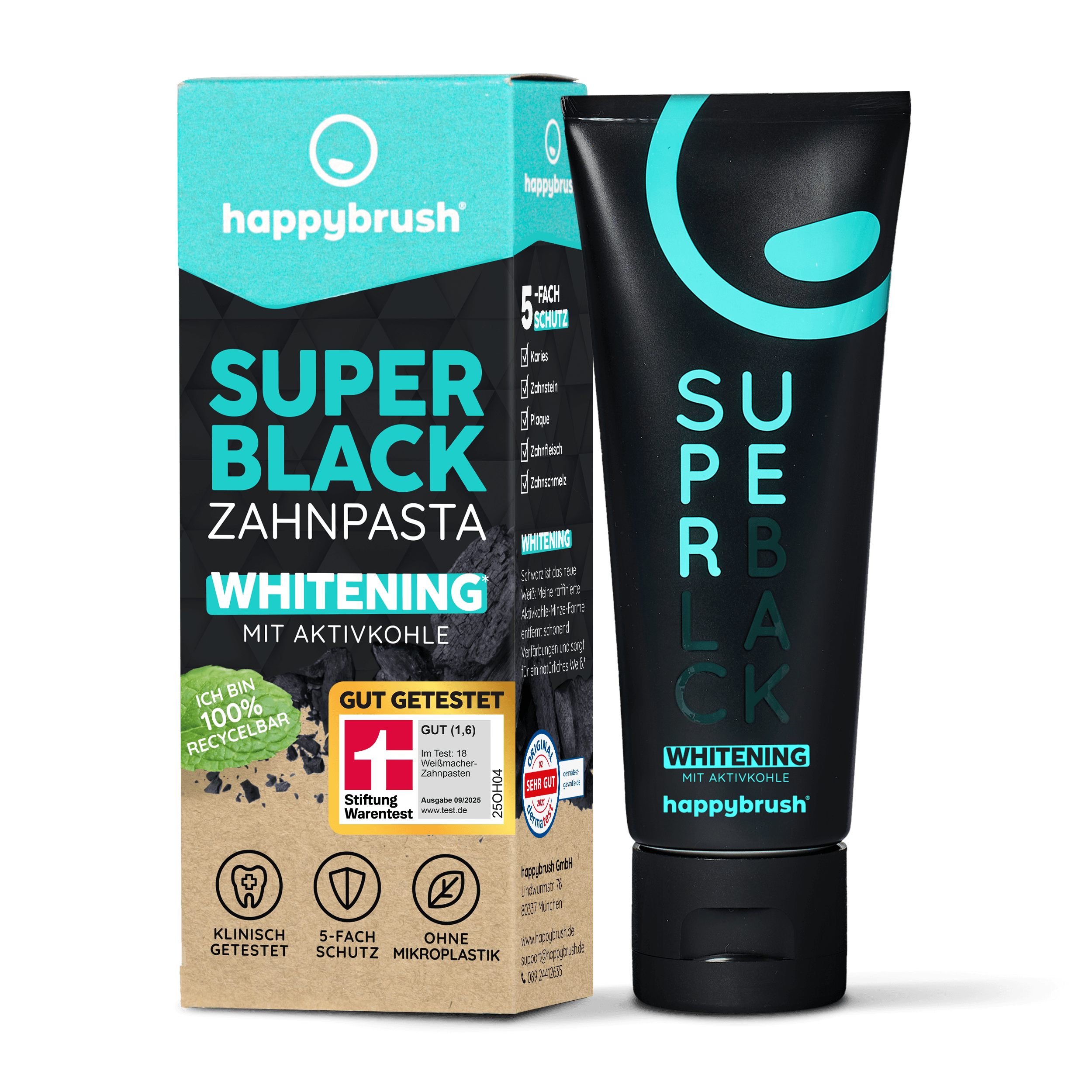 Schwarz ist das neue Weiß: Meine raffinierte Aktivkohle-Formel entfernt schonend Verfärbungen und sorgt für ein natürliches Weiß. Und mein besonderer Calcium-Wirkstoff unterstützt die Remineralisierung Deiner Zähne. Vegan, Made in Germany, glutenfrei und 100% recycelbar (60% recycelte Tube). Ohne Triclosan, ohne Microplastik