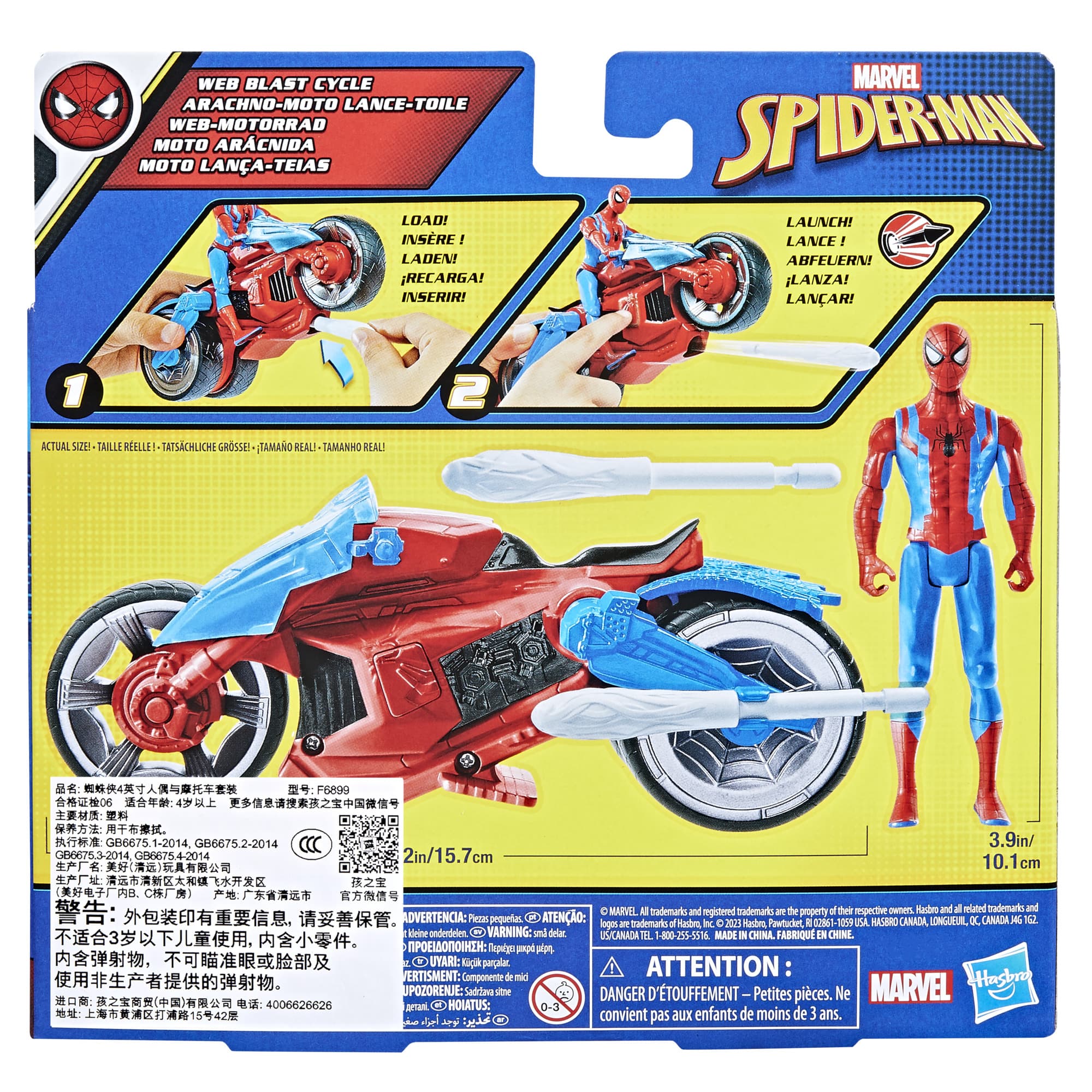 • INTERAKTIVES SPIELSET FÜR KINDER: Dieses Spider-Man Spielset enthält eine kultige, 10 cm große Marvel Spider-Man Action-Figur, ein Spidey Spielzeugmotorrad und 2 Netz-Projektile.