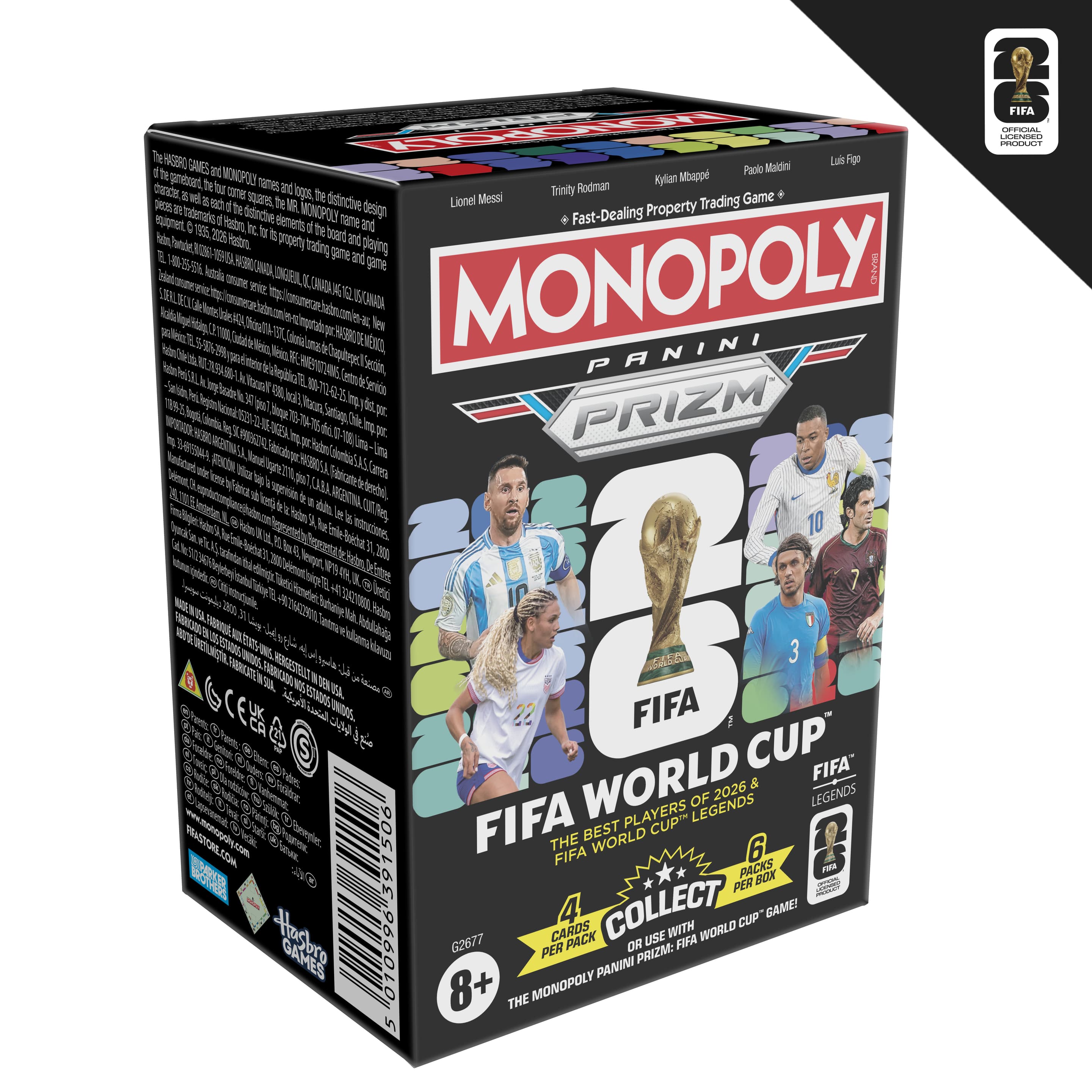 MONOPOLY PANINI PRIZM: FIFA WORLD CUP 2026 & LEGENDS KARTEN: Diese Monopoly Panini Prizm: FIFA World Cup Booster Box enthält 24 FIFA WORLD CUP Sammelkarten mit aktuellen Stars und FIFA World Cup Legenden
