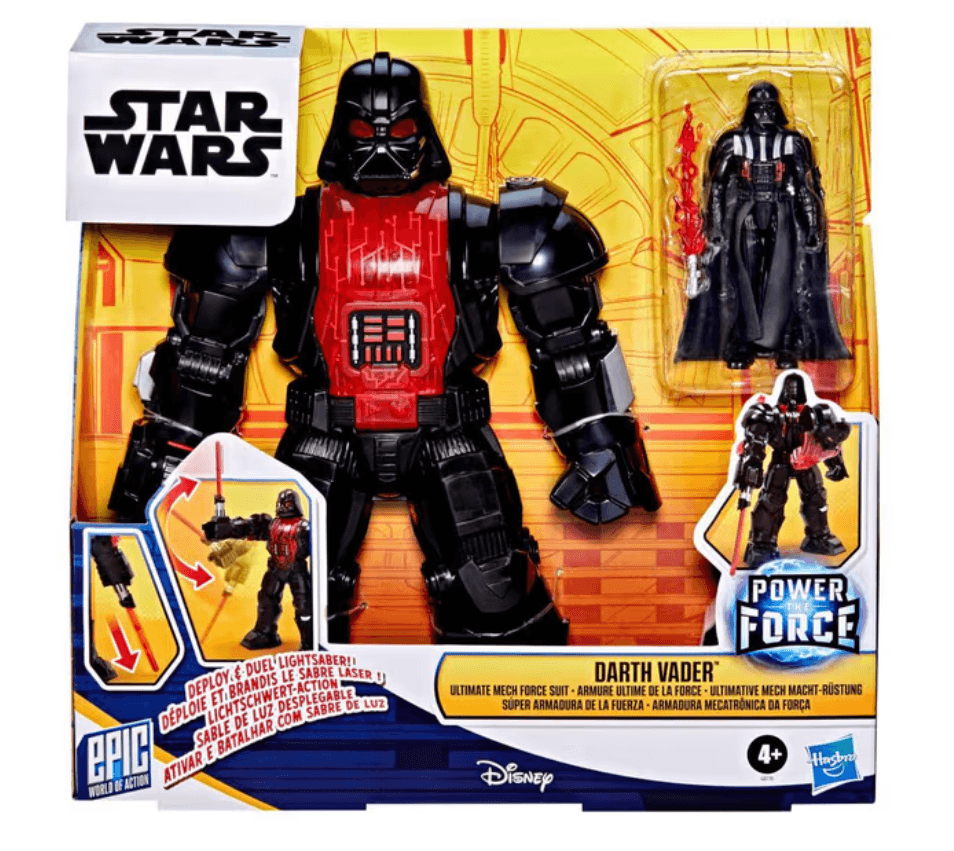 Bereit für epische Schlachten? Mit dem Darth Vader Ultimate Mech Force Suit aus der Epic World of Action von Hasbro wird der legendäre Sith-Lord neu interpretiert! Das Set enthält eine bewegliche Darth Vader Figur (10 cm) und einen großen Mech-Anzug (28 cm) mit funktionalem Cockpit, ausfahrbarem Lichtschwert und Attack-Modus.