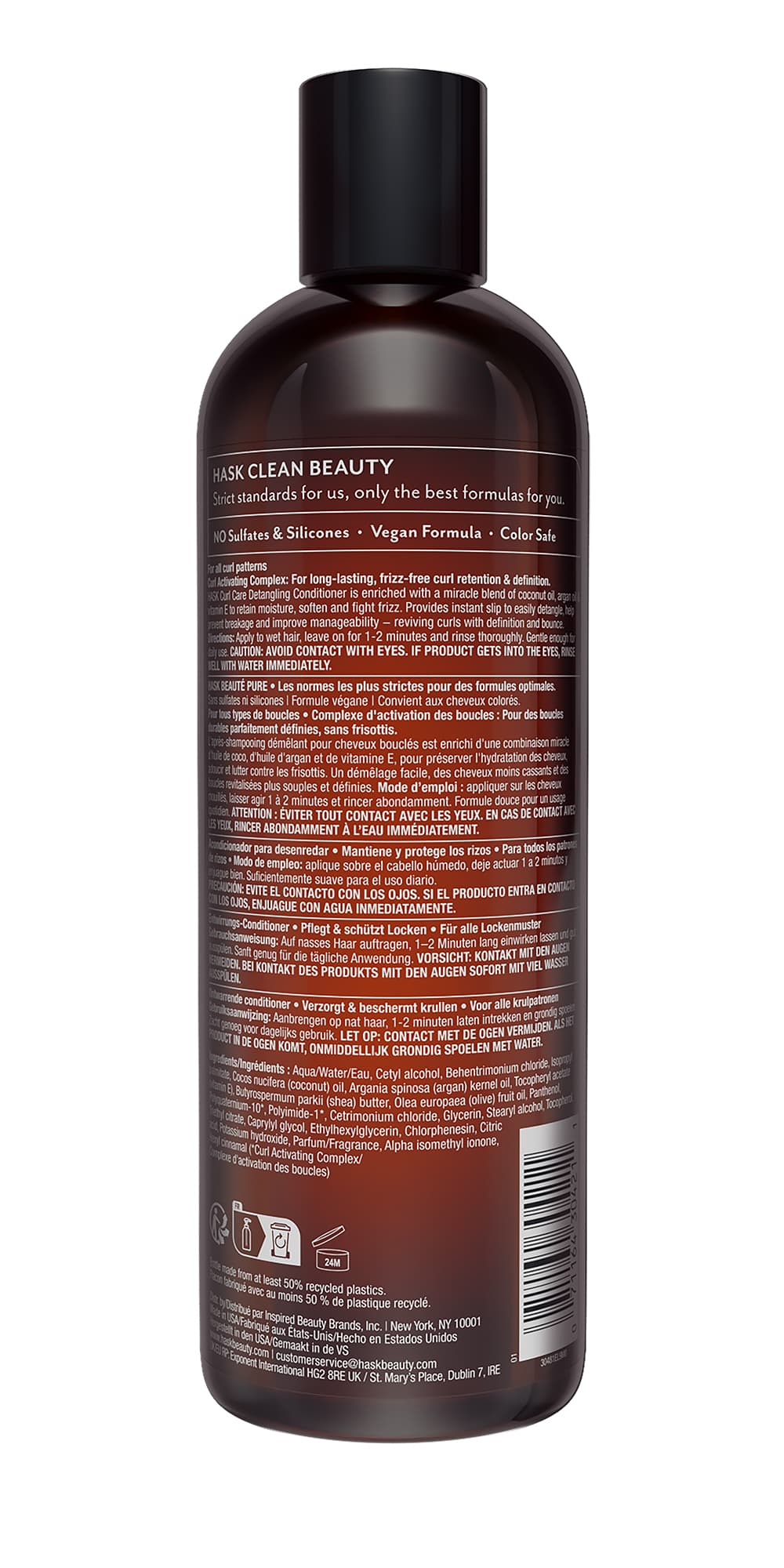 Der Hask Curl Care Conditioner schließt die Haarfaser nach dem Shampoonieren und bewahrt so die nötige Feuchtigkeit. Angereichert mit einer Mischung aus Kokosöl, Arganöl und Vitamin E hydratisiert er das Haar und schützt die Lockenstruktur. Bändigt krauses und widerspenstiges Haar und hilft, die Locken in Form zu halten. Verbessert die Kämmbarkeit von lockigem, störrischem Haar und schützt wirksam gegen Haarbruch. Frei von Silikonen, Sulfaten und Alkohol, vegan und tierversuchsfrei.