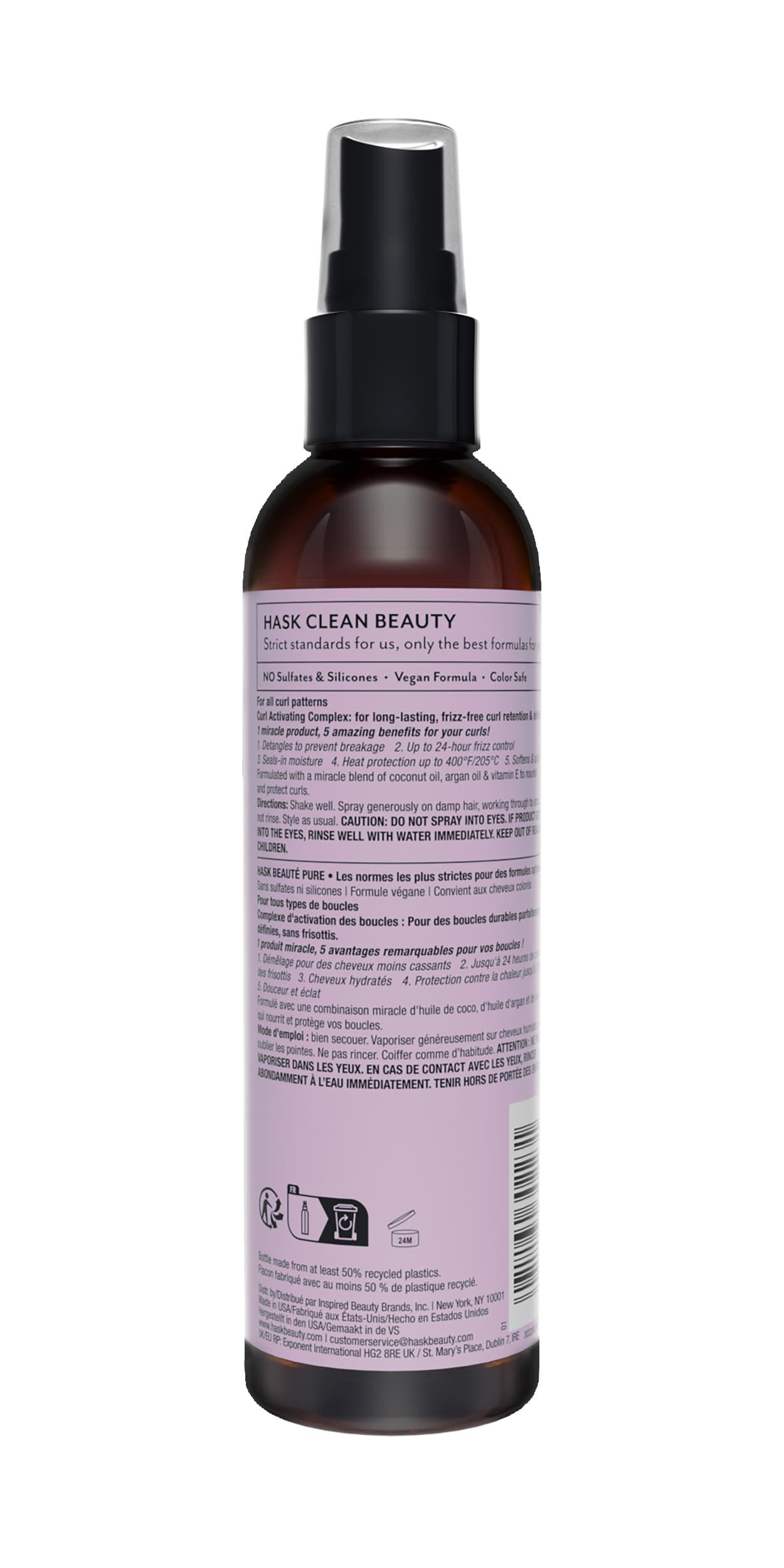 Das Hask Curl Care 5in1 Leave-in Spray ist ein spezielles 5-in-1 Leave In Spray zur Pflege von welligem und lockigem Haar. Mit einem Zisch erhält das Haar gleich 5 Vorteile: es wird entwirrt und seine Lockenstruktur dank des Lockenaktivatorkomplex bewahrt, es wird vor Frizz und Hitze geschützt sowie vor Haarbruch bewahrt - und das bis zu 24 Stunden lang. Das Ergebnis zeigt verführerischen Glanz.
