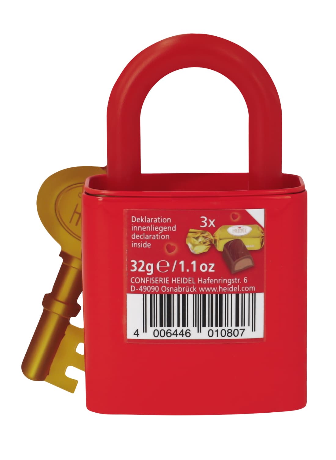 Ein Symbol der Liebe – mit einem köstlichen Extra: Dieses rote Liebesschloss im klassischen Design ist mehr als nur ein romantisches Zeichen. Es ist gefüllt mit feinen Schokopralinen mit zartschmelzender Nougatcremefüllung, die Herzen höherschlagen lassen. Als liebevolles Detail hängt an jedem Schloss ein kleiner Pappschlüssel – ideal für den Valentinstag, Jahrestage oder einfach als süßer Liebesgruß zwischendurch.