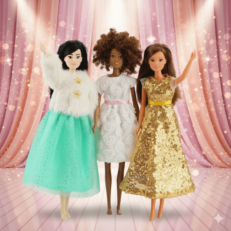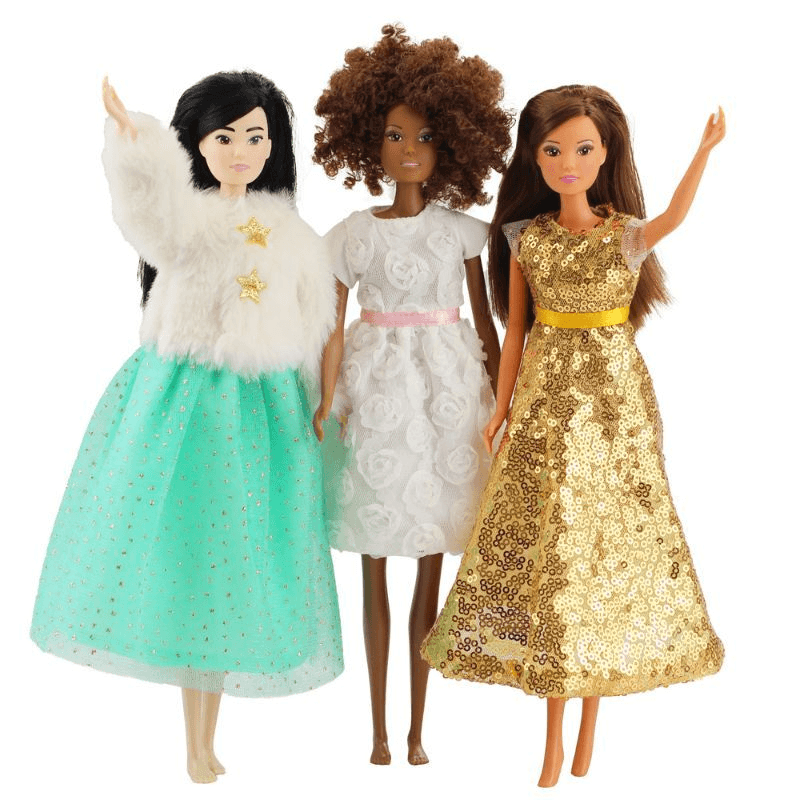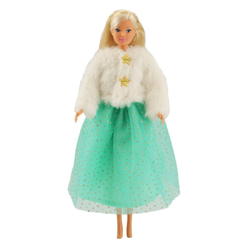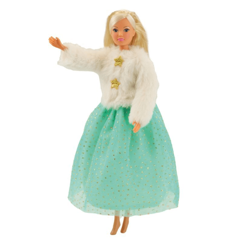 Verwandle deine Modepuppe in eine echte Schneeprinzessin mit dem Heless Time2Shine Outfit „Yuki“! Dieses traumhafte Set besteht aus einer kuscheligen Plüschjacke in elegantem Weiß, verziert mit zwei goldenen Sternknöpfen, und einem glitzernden Tüllrock in zartem Türkis. Das Outfit passt perfekt für Puppen der Größe 29 cm wie Barbie® oder Steffi Love® und ist ideal für kreative Rollenspiele, Puppenpartys und fantasievolle Winterabenteuer. Dank Klettverschluss und elastischem Bund lässt sich das Set kinderleicht an- und ausziehen. Hochwertige Materialien und liebevolle Details machen dieses Ensemble zu einem Must-have für kleine Fashionistas.