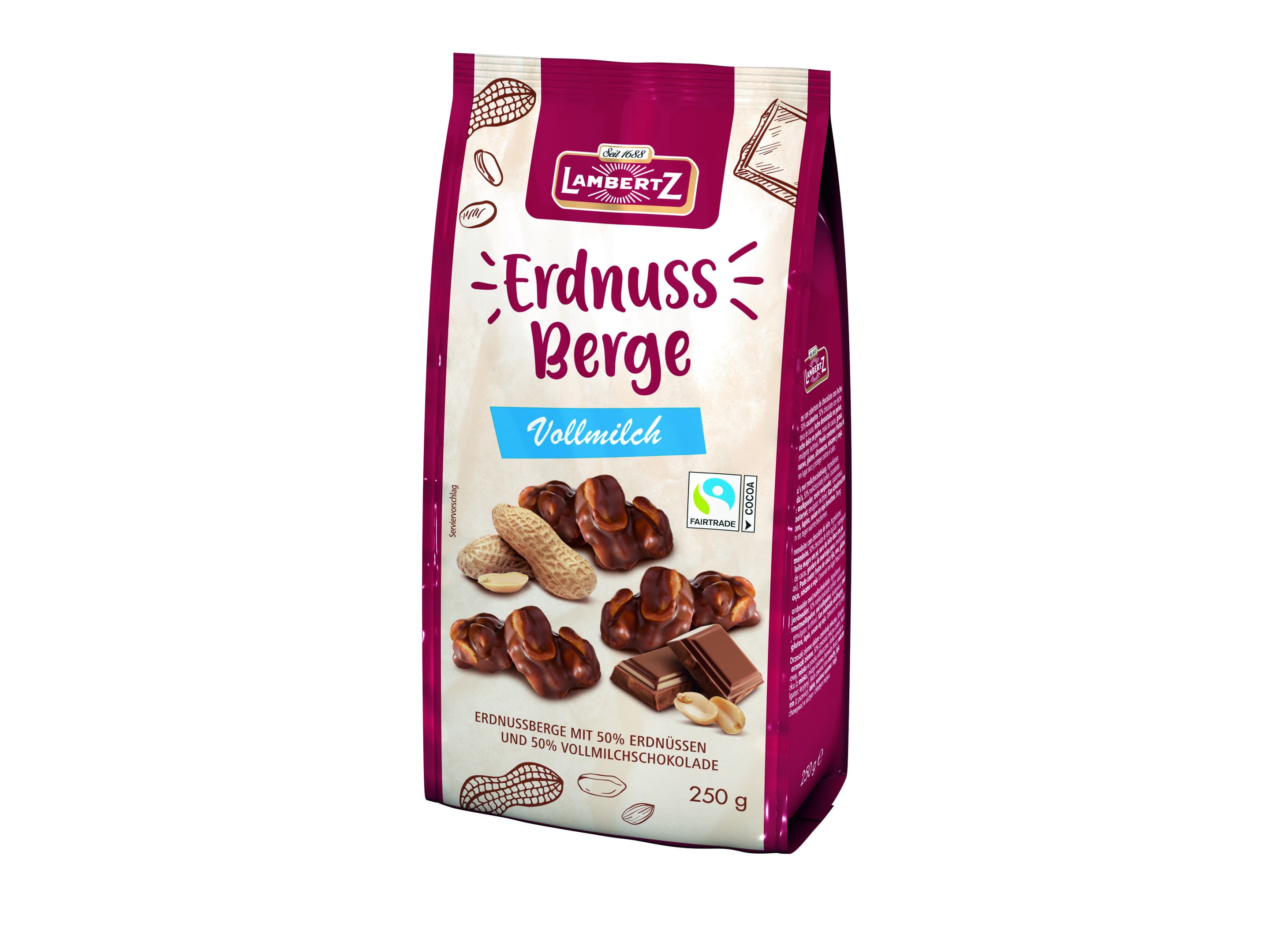 Unregelmäßige, aus Erdnüssen und glänzender Vollmilchschokolade zusammengesetzte„Berge“.