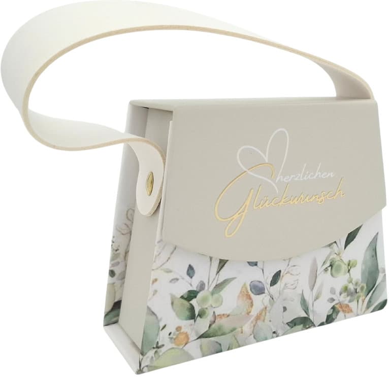 Mini Geschenkschachtel Handtasche Herzlichen Glückwunsch mit Magnetverschluss.