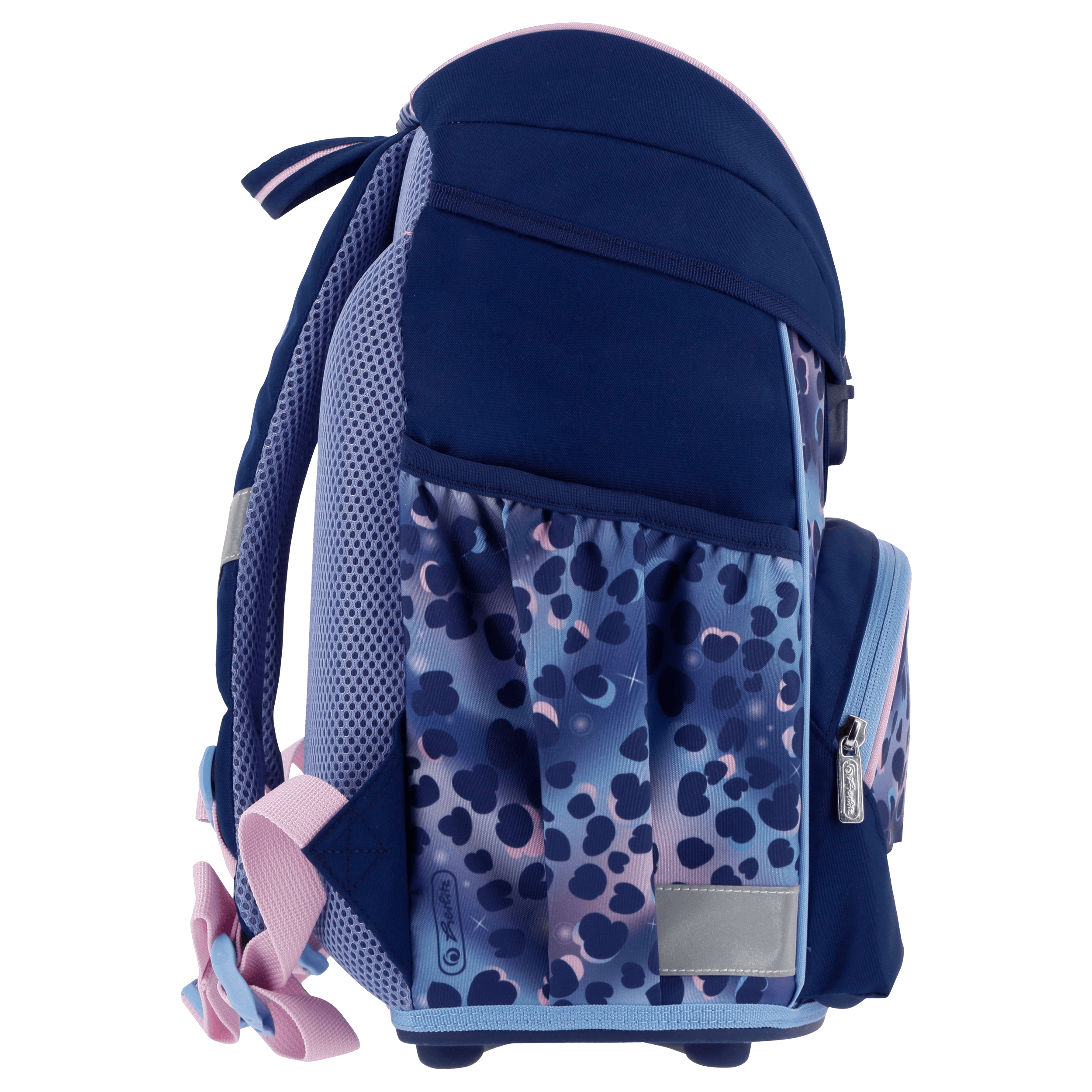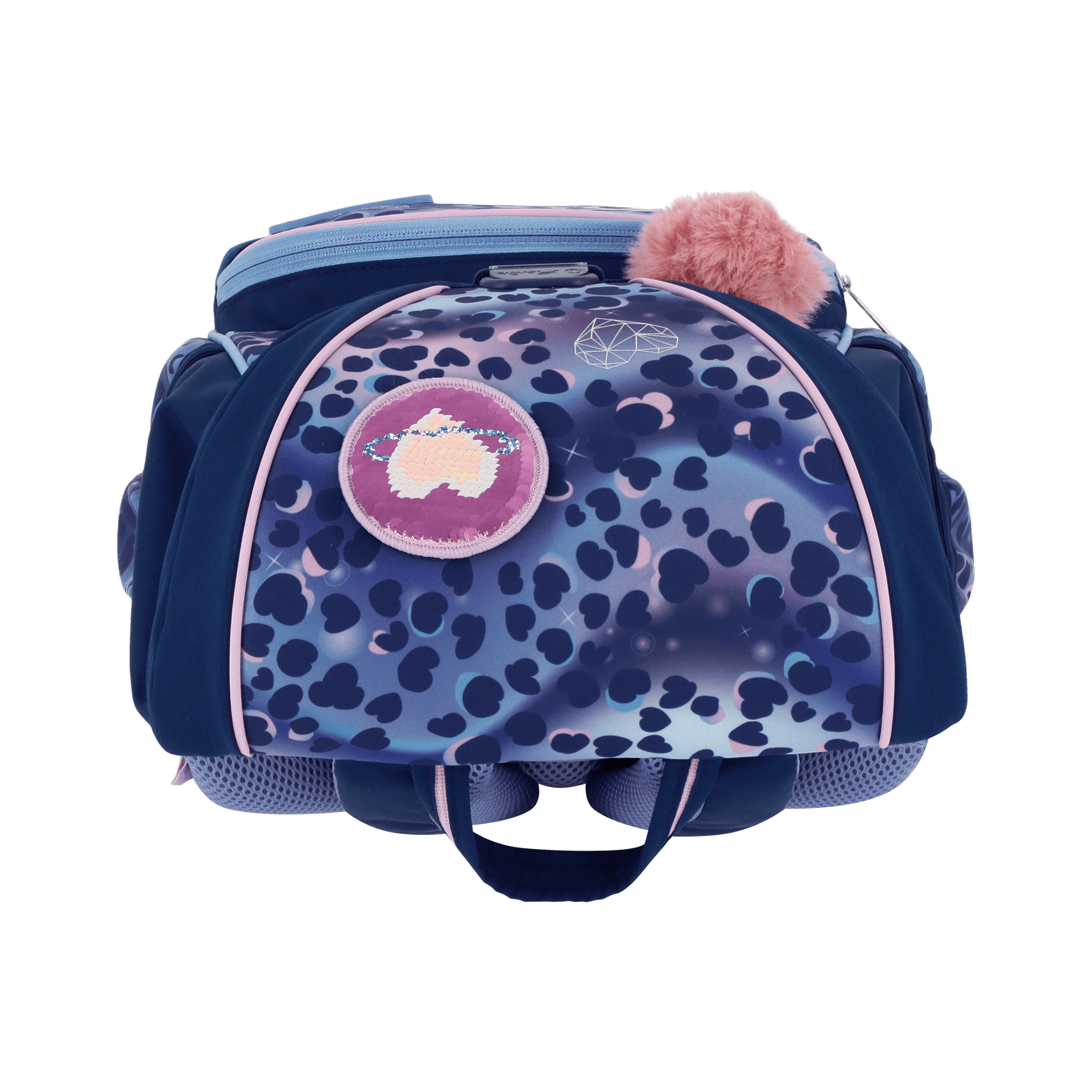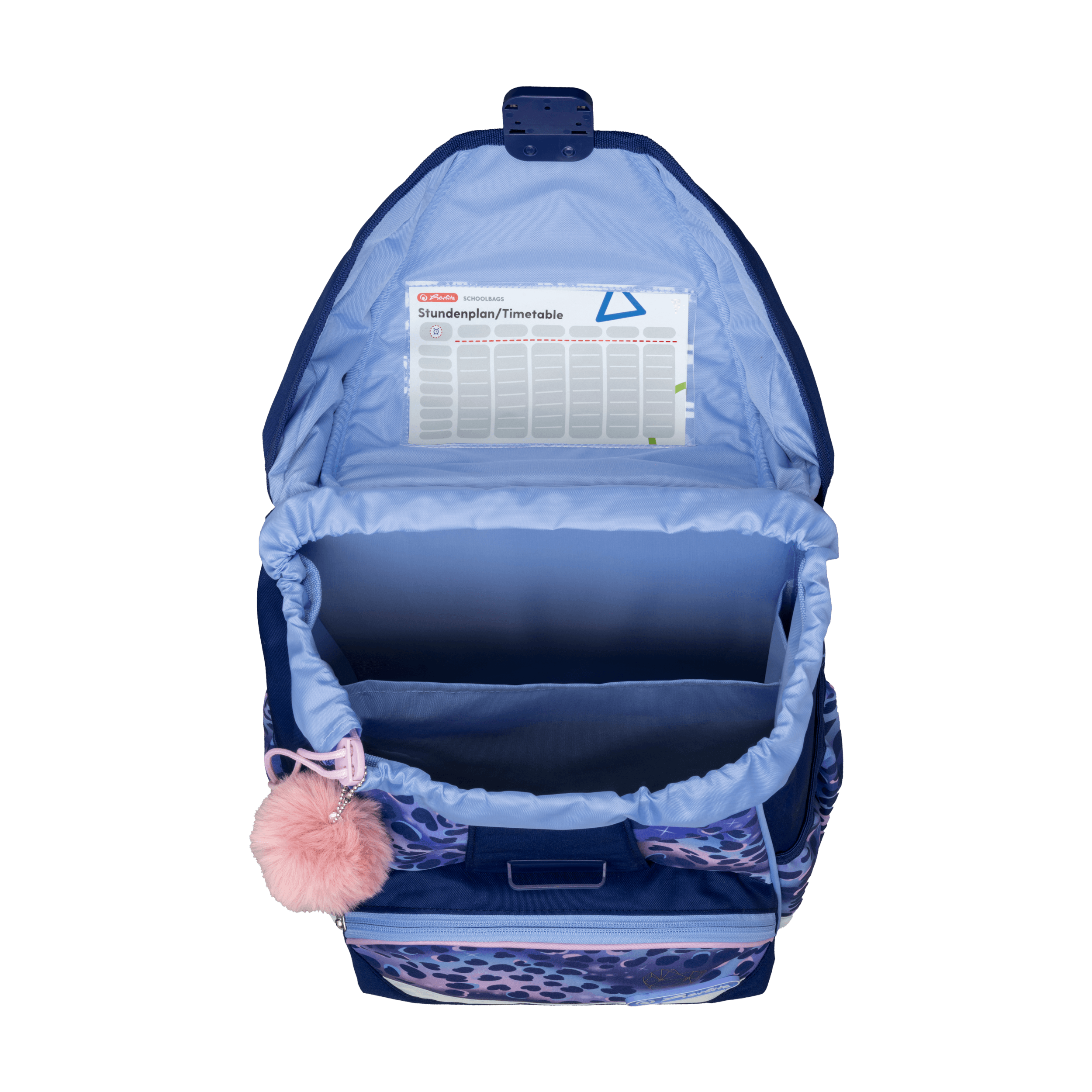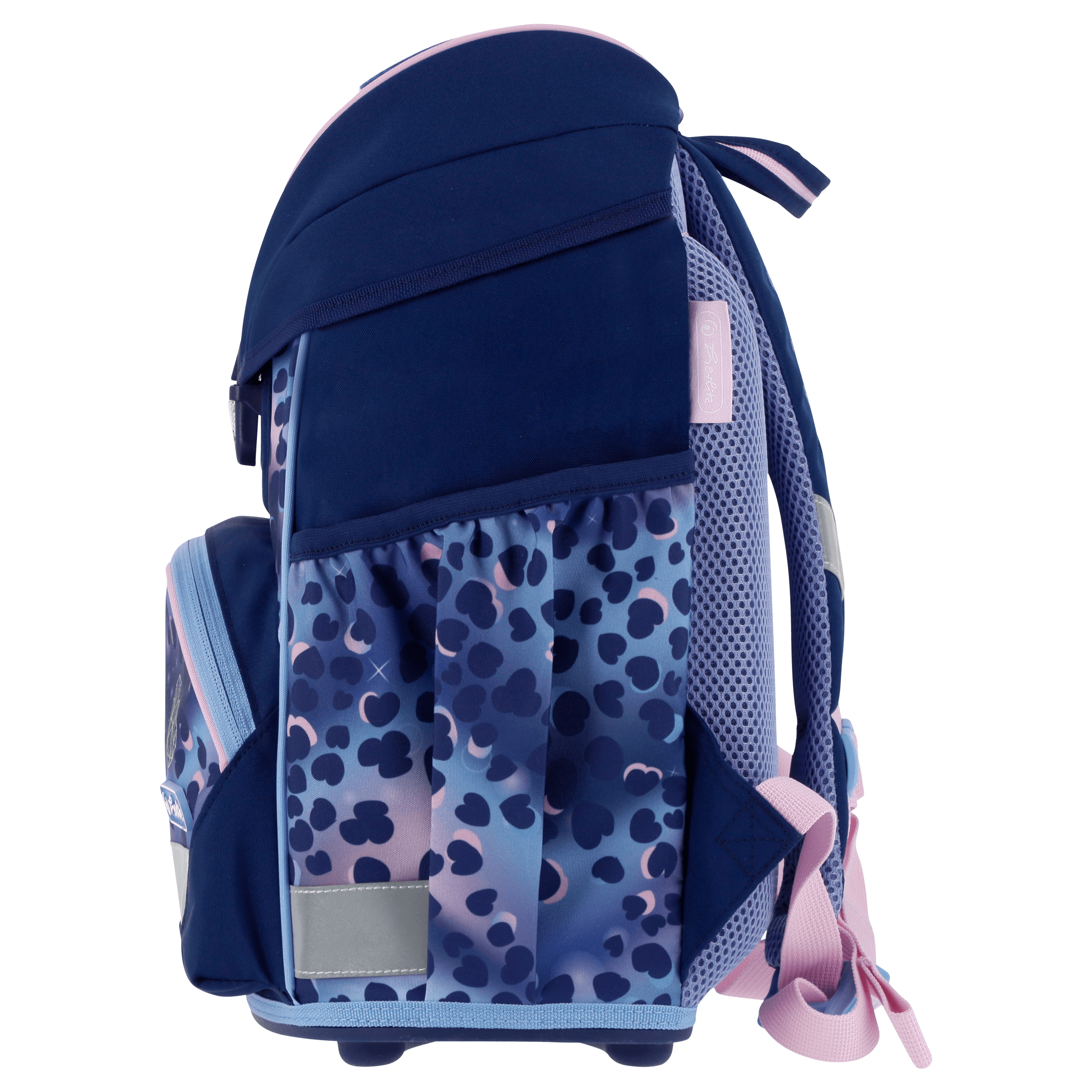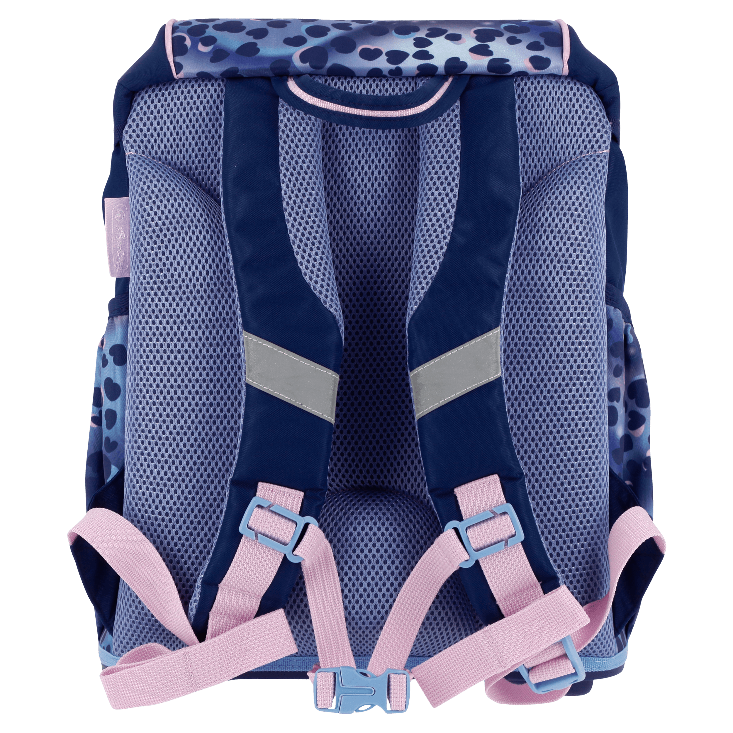 Der Schulranzen kombiniert ein geringes Leergewicht von nur ca. 750 g mit durchdachter Funktionalität. Ein atmungsaktives, ergonomisch geformtes Rückenpolster sowie verstellbare Schulter- und Brustgurte sorgen für einen angenehmen Sitz und eine optimale Lastenverteilung. Für gute Sichtbarkeit im Straßenverkehr ist der Ranzen mit hochwertigem ORALITE-Reflexmaterial an Front, Seiten und Schultergurten ausgestattet, ergänzt durch einen Reflektor im Klickschloss. Das wasserabweisende Polyestermaterial und eine stabile Bodenplatte schützen den Inhalt zuverlässig. Ein geräumiges Hauptfach mit integriertem Buchfach, zwei Seitentaschen und eine Fronttasche mit Reißverschluss bieten viel Platz für alle Schulmaterialien.