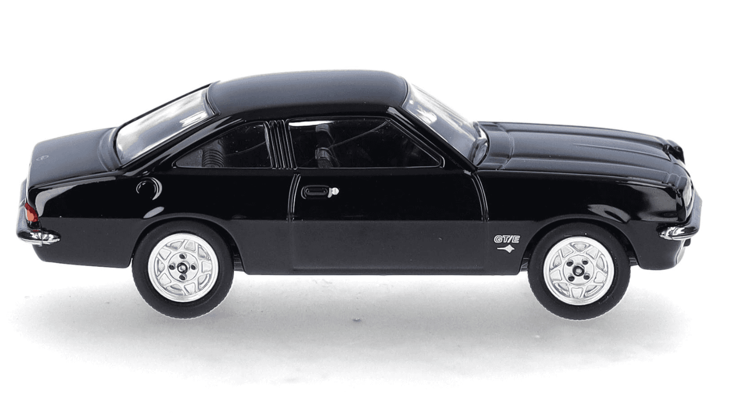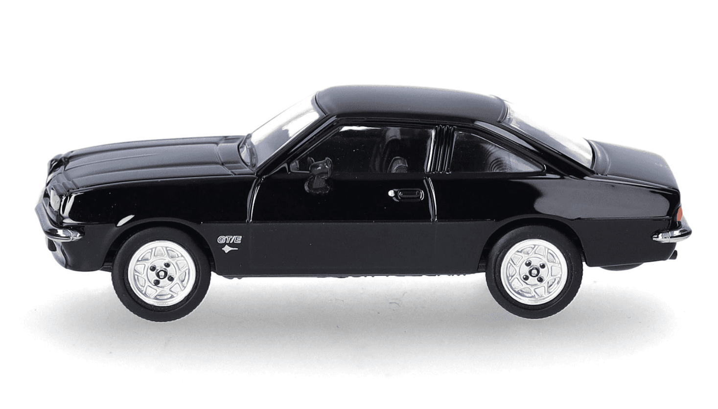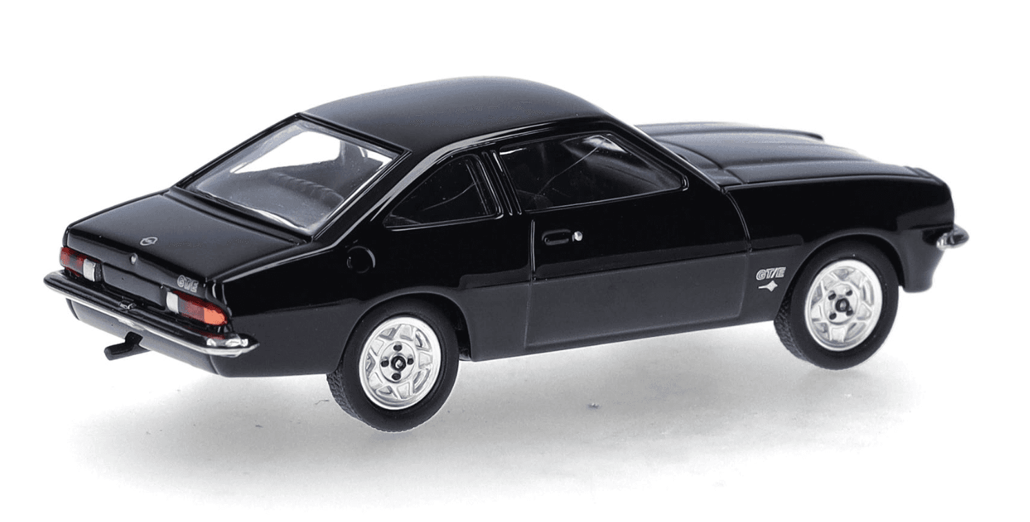 Im Jahr 1975 lief der letzte legendäre Opel Manta A vom Band. Sein Nachfolger war der Manta B, der noch im gleichen Jahr noch vorgestellt wurde. Die Motorisierungen reichten von 55 PS bis zu 105 PS im GT/E. Das Modell erscheint in schwarz.