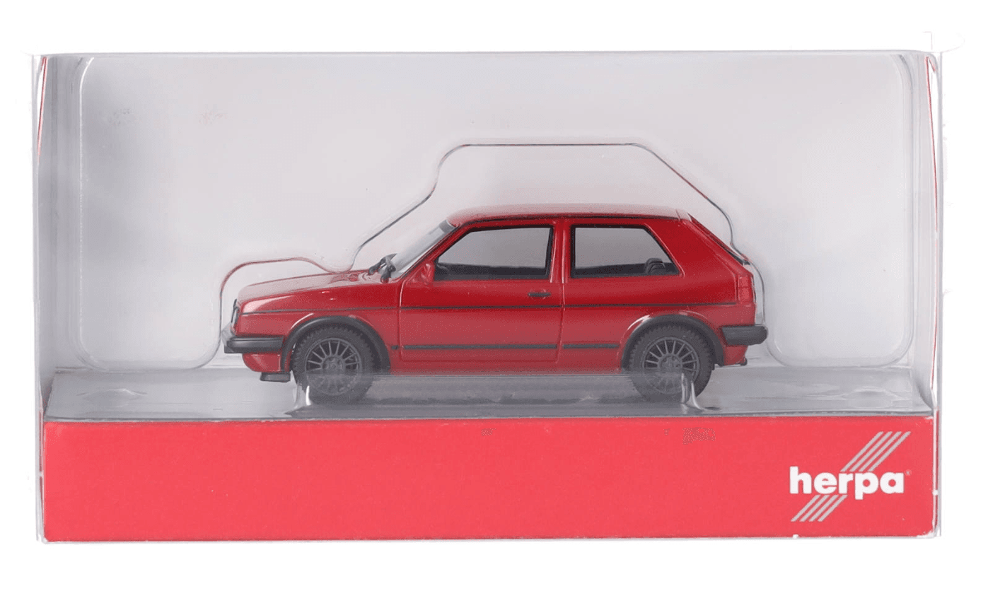 Der VW Golf II GTi zählt zu den beliebtesten Fahrzeugen von Volkswagen, so auch im Herpa PKW-Programm. In Tornadorot wird das Modell erneut das Herpa Programm mit schwarzen Felgen ergänzen.