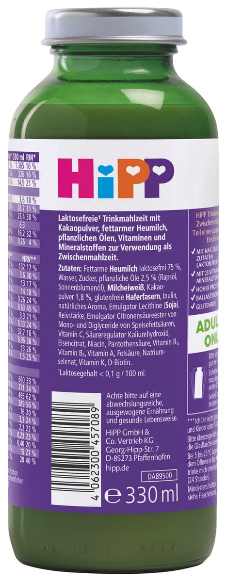 - VOLLWERTIGE ZWISCHENMAHLZEIT: Ich bin die HiPP Trinkmahlzeit Kakao – dein Upgrade für unterwegs! Erwachsen, vollwertig und ready, wenn du’s bist. Ich bin nicht irgendein Drink, sondern eine vollwertige Mahlzeit für zwischendurch.