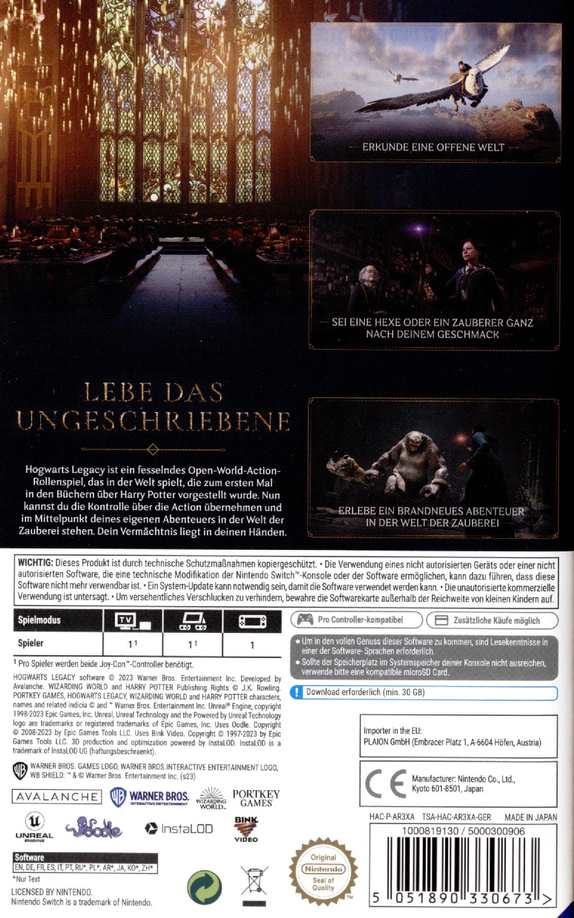 Hogwarts Legacy ist ein fesselndes Open-World Action-Rollenspiel, das in der Welt spielt, die erstmals in den Harry Potter Büchern vorgestellt wurde. Begib dich auf eine Reise durch vertraute und neue Schauplätze, während du magische Tierwesen erforschst und entdeckst, deinen Charakter anpasst, Tränke braust, Zaubersprüche meisterst, Talente verbesserst und die Hexe oder der Zauberer wirst, die du sein möchtest. Erlebe Hogwarts im 19. Jahrhundert. Finde Verbündete, kämpfe gegen Schwarze Magie und entscheide letztlich über das Schicksal der Welt der Zauberei. Dein Vermächtnis ist das, was du daraus machst. Lebe das Ungeschriebene. Erkunde eine offene Welt Die Welt der Zauberei erwartet dich. Erkunde frei Hogwarts, Hogsmeade, den Verbotenen Wald und das umliegende Land. Sei die Hexe oder der Zauberer, der du sein willst Erlerne Zaubersprüche, braue Zaubertränke, züchte Pflanzen und kümmere dich auf deiner Reise um Tierwesen. Werde deinem Haus zugewiesen, baue Beziehungen auf und meistere Fähigkeiten, um die Hexe oder der Zauberer zu werden, der du sein willst. Erlebe ein neues Abenteuer in der Welt der Zauberei Erlebe die Welt der Zauberei in einer noch nicht erforschten Ära, um eine verborgene Wahrheit aus der Vergangenheit aufzudecken. Kämpfe gegen Trolle, schwarze Magier, Kobolde und mehr, während du einem gefährlichen Schurken gegenüberstehst, der die Welt der Zauberei bedroht. FEATURES • Erlebe Hogwarts im 19. Jahrhundert. Dein Charakter ist ein Schüler, der den Schlüssel zu einem uralten Geheimnis besitzt • Entdecke das Gefühl, in Hogwarts zu leben, während du Verbündete findest und gegen schwarze Zauberer kämpfst • Entscheide letztlich über das Schicksal der Welt der Zauberei • Dein Vermächtnis ist das, was du daraus machst. Lebe das Ungeschriebene Um in den vollen Genuss dieses Spiels zu kommen sind Lesekenntnisse erforderlich. Spiel komplett in Deutsch! Download erforderlich (mind. 30GB) In der Erstauflage ist zusätzlich zum Spiel der "Onyx Hippogreif (Reittier)" DLC enthalten (kostenloser DLC bei Neukauf enthalten, einmalig verwendbar)