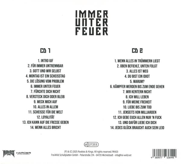 | 6 | Frei. Wild | Immer unter Feuer | 00:03:20 | |