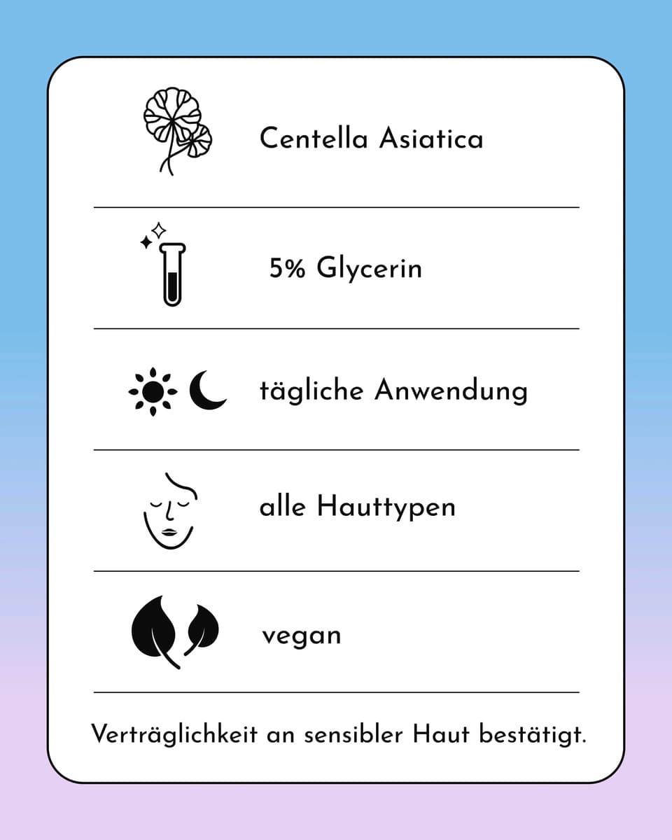 Sanfte Reinigung, spürbare Frische, strahlende Haut. Unser Mizellenwasser ist mehr als nur ein Make-up-Entferner. Es ist der erste Schritt zu gepflegter und beruhigter Haut. Mit der hochwirksamen Mizellen-Technologie entfernt es sanft, aber gründlich sogar wasserfestes Make-up, Talg und Rückstände, ganz ohne Reiben und Abwaschen. Die milde Formulierung wirkt beruhigend, trägt zum Schutz der Hautbarriere bei und fördert ein ausgeglichenes Hautgefühl, ideal auch für empfindliche Haut. Dank 5% Glycerin mit intensiv feuchtigkeitsspendender Wirkung fühlt sich die Anwendung besonders angenehm an, ganz ohne Spannungsgefühl oder Austrocknen. Erlebe ein Hautgefühl wie frisch gereinigt und zart gepflegt in nur einem Schritt.
