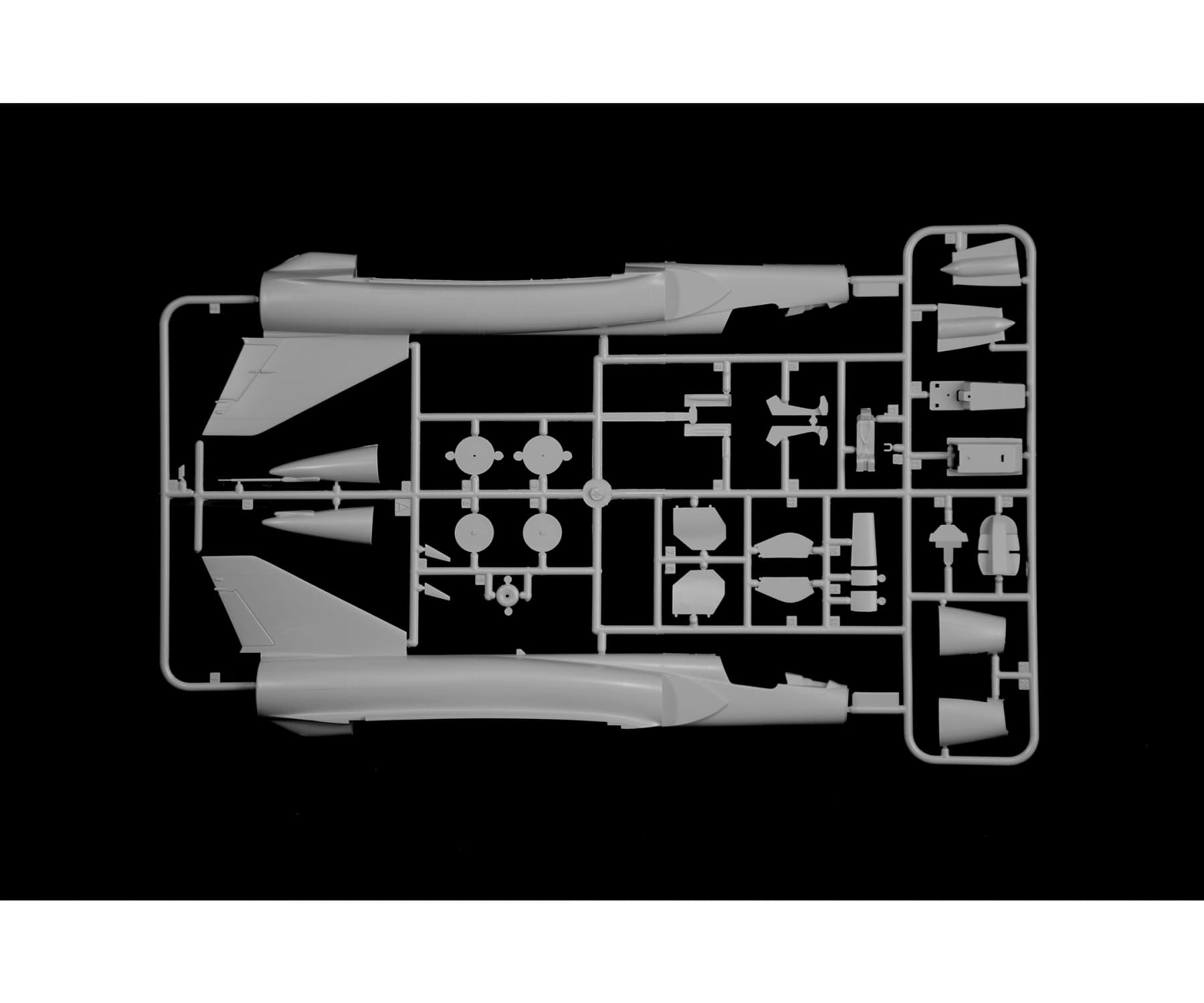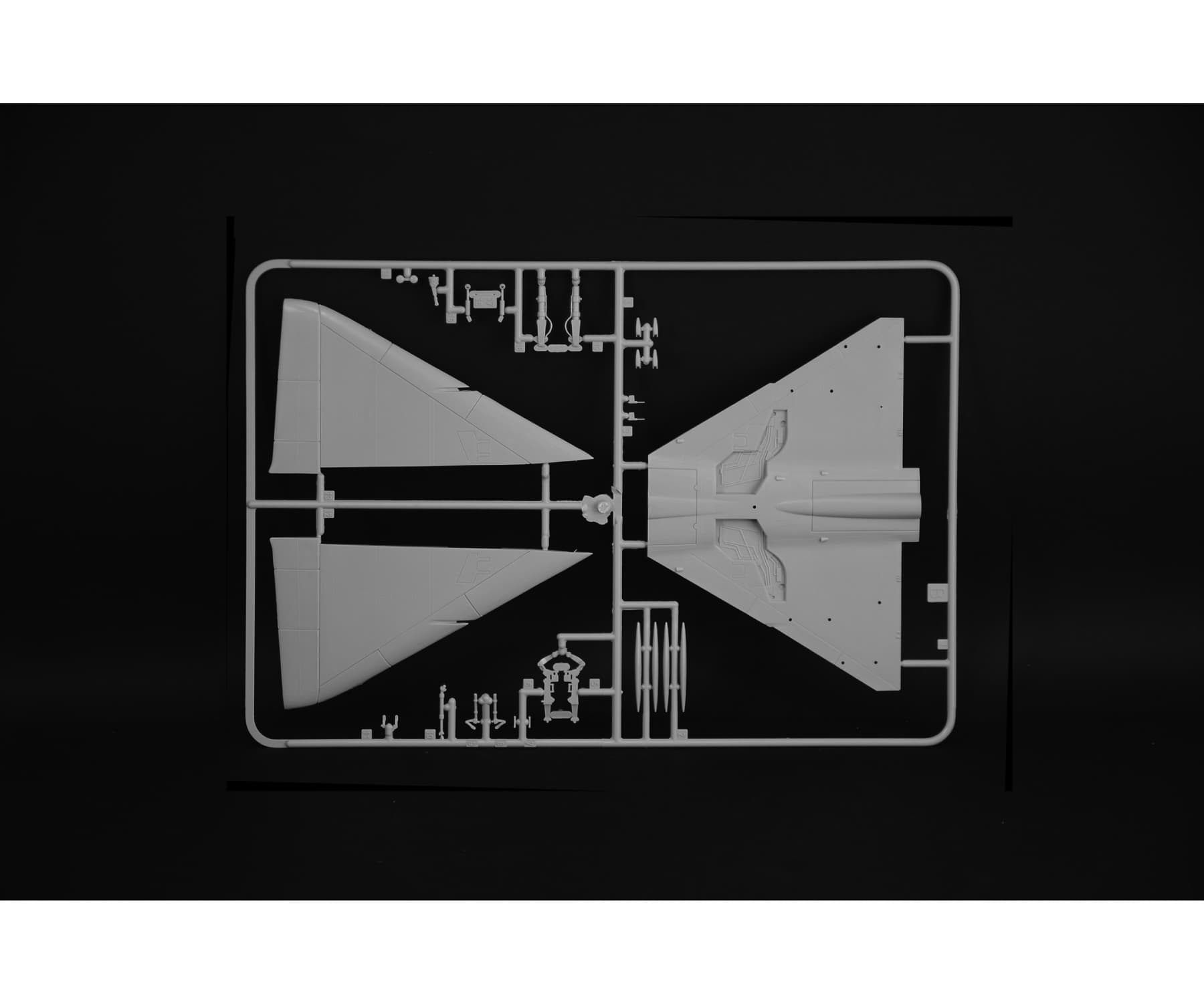 Art.Nr.: 510002816 Artikelbezeichnung: 1:48 Mirage III E Die Dassault Mirage III ist ein Meilenstein in der französischen Luftfahrtproduktion. Hergestellt ab den frühen 1960er Jahren, um die Einheiten der Armée de l'Air auszurüsten, erwies sie sich sofort als äußerst effektiv. Sie wurde schnell zu einem kommerziellen Erfolg und wurde in zahlreiche Länder exportiert, wo sie an verschiedenen Konflikten in den 1970er und 1980er Jahren teilnahm. Gekennzeichnet durch ihren unverwechselbaren Deltaflügel, war sie dank ihres Snecma Atar-Motors mit Nachbrenner in der Lage, Mach 2 zu überschreiten. Nach der Mirage IIIC, die für die Rolle des Abfangjägers bestimmt war, wurde die Mehrzweck- und Bodenangriffsversion entwickelt. So entstand die Mirage IIIE, die aerodynamisch durch eine Verlängerung des Rumpfes gekennzeichnet ist, um verbesserte Avionik aufzunehmen.