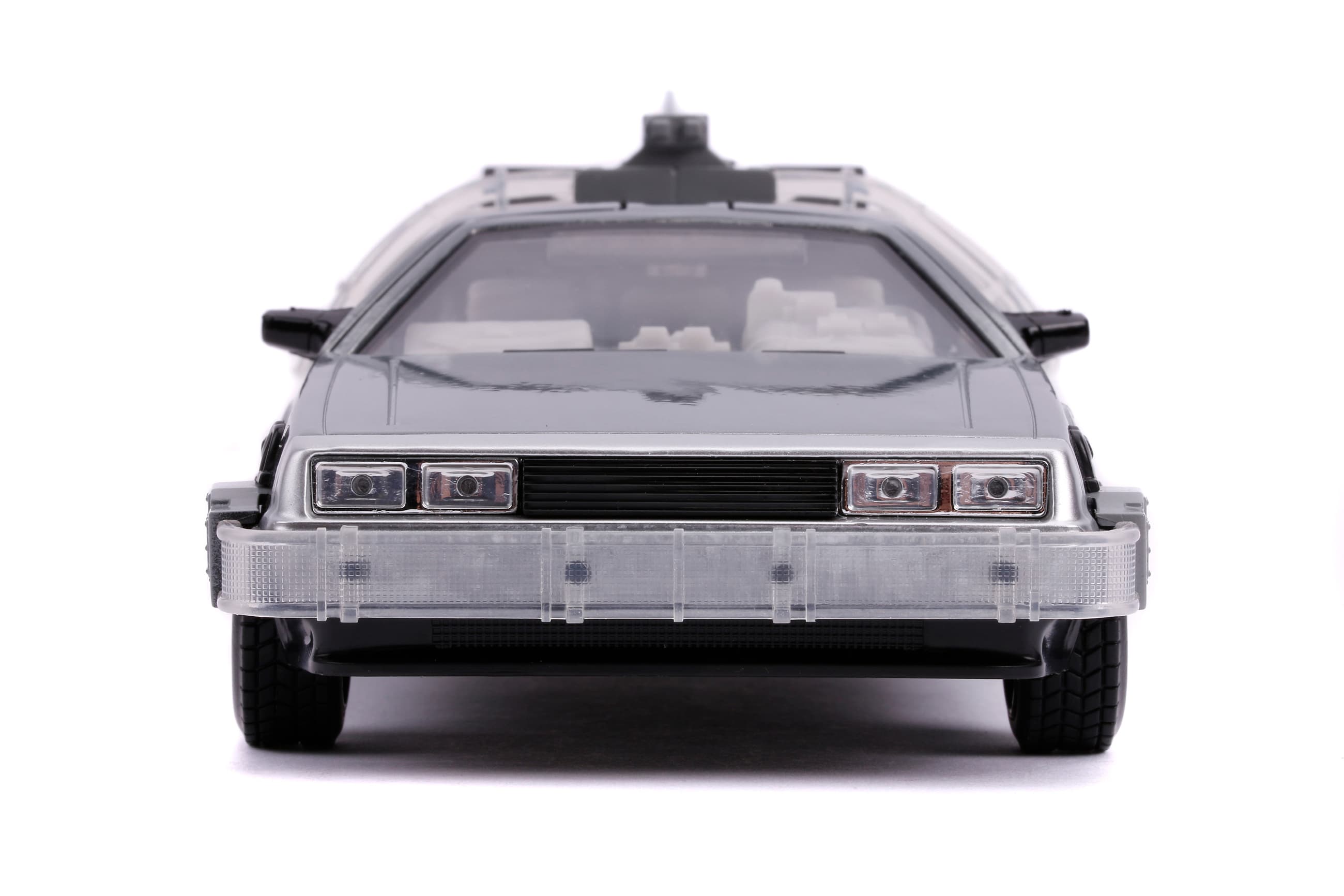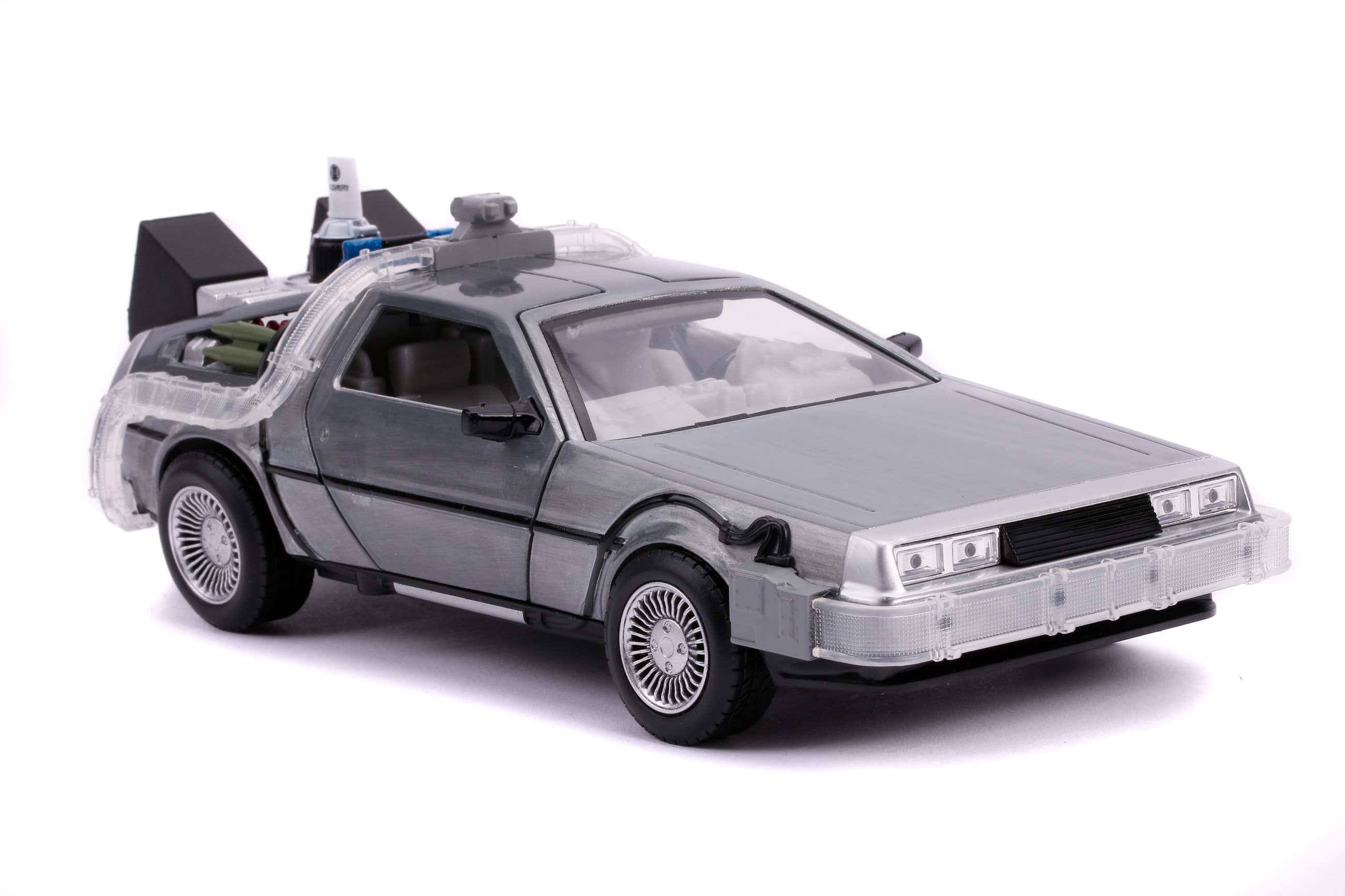 Machen Sie eine Zeitreise in die Vergangenheit mit einem der ikonenhaftesten Fahrzeuge von Hollywood Rides: der Zeitmaschine aus Back to the Future (1989). Mit seiner Zinkdruckgusskarosserie, der Beleuchtung und dem Schwebemodus ist dieses Fahrzeug im Maßstab 1:24 ein Muss in jeder Sammlung! Das Modell ist aus Zinkdruckguss und verfügt über zu Öffnende Teile.