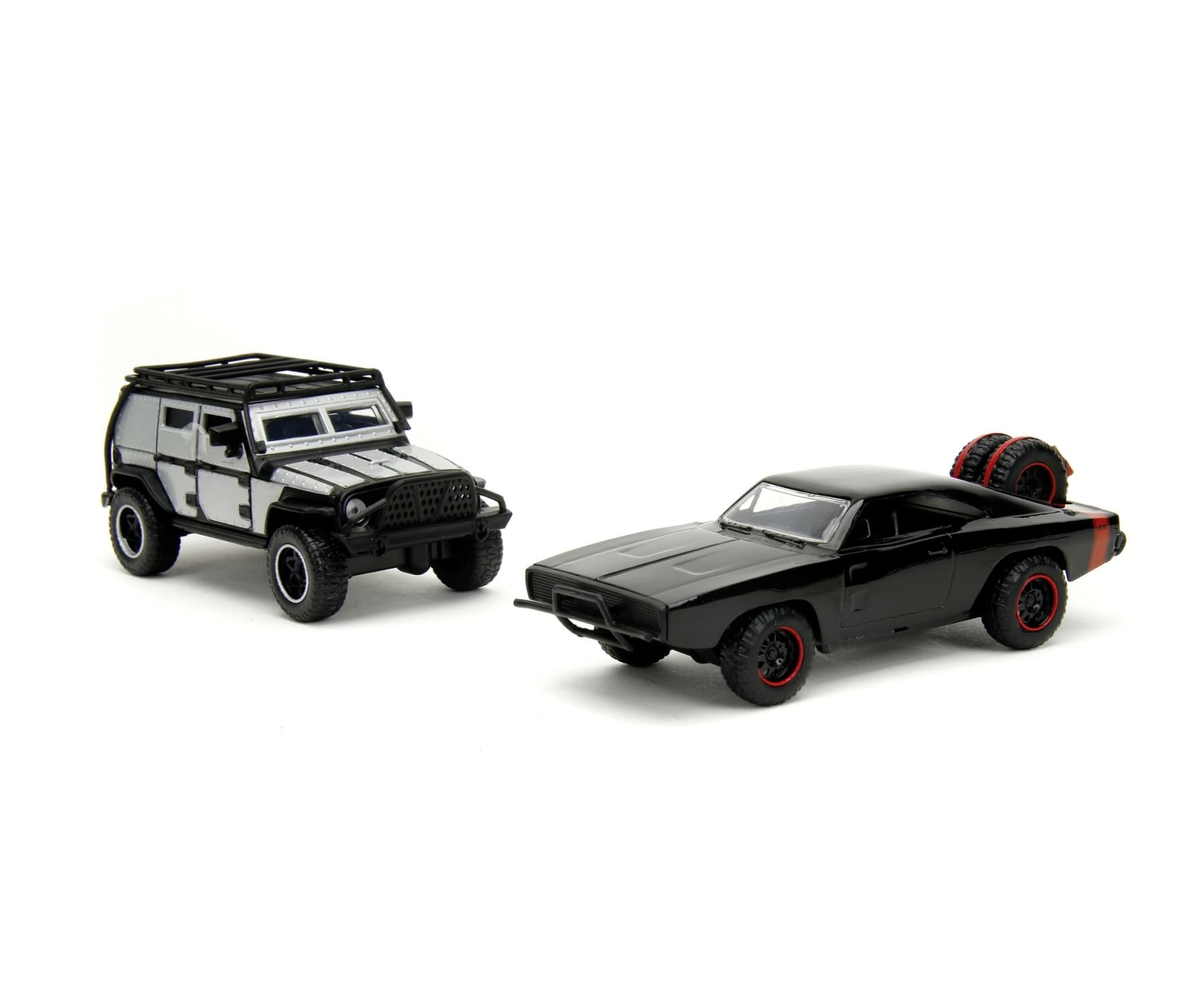 Jada Toys - Fast and Furious Autos (2er-Set) - Dom`s Dodge Charger R/T 1970 & Tej`s Jeep Wrangler aus Fast & Furious 7 - 2 Legacy Series Modellautos zum Öffnen, 1:32, 19cm, ab 8 Jahre, Wave 2, Set 2 • Double Trouble - ZWEI Fast and Furious Cars in EINEM Auto-Pack: der Jeep Wrangler von Tej Parker (Ludacris) und der Dodge Charger 1970 von Dominic „Dom" Toretto (Vin Diesel) als Offroad-Modell. • Filmautos aus Furious 7 - Beide Fahrzeuge sind detaillierte 1:32 Nachbildungen aus dem 7. Film der „The Fast and the Furious"-Reihe - gefertigt aus Metall und mit Türen zum Öffnen ausgestattet.