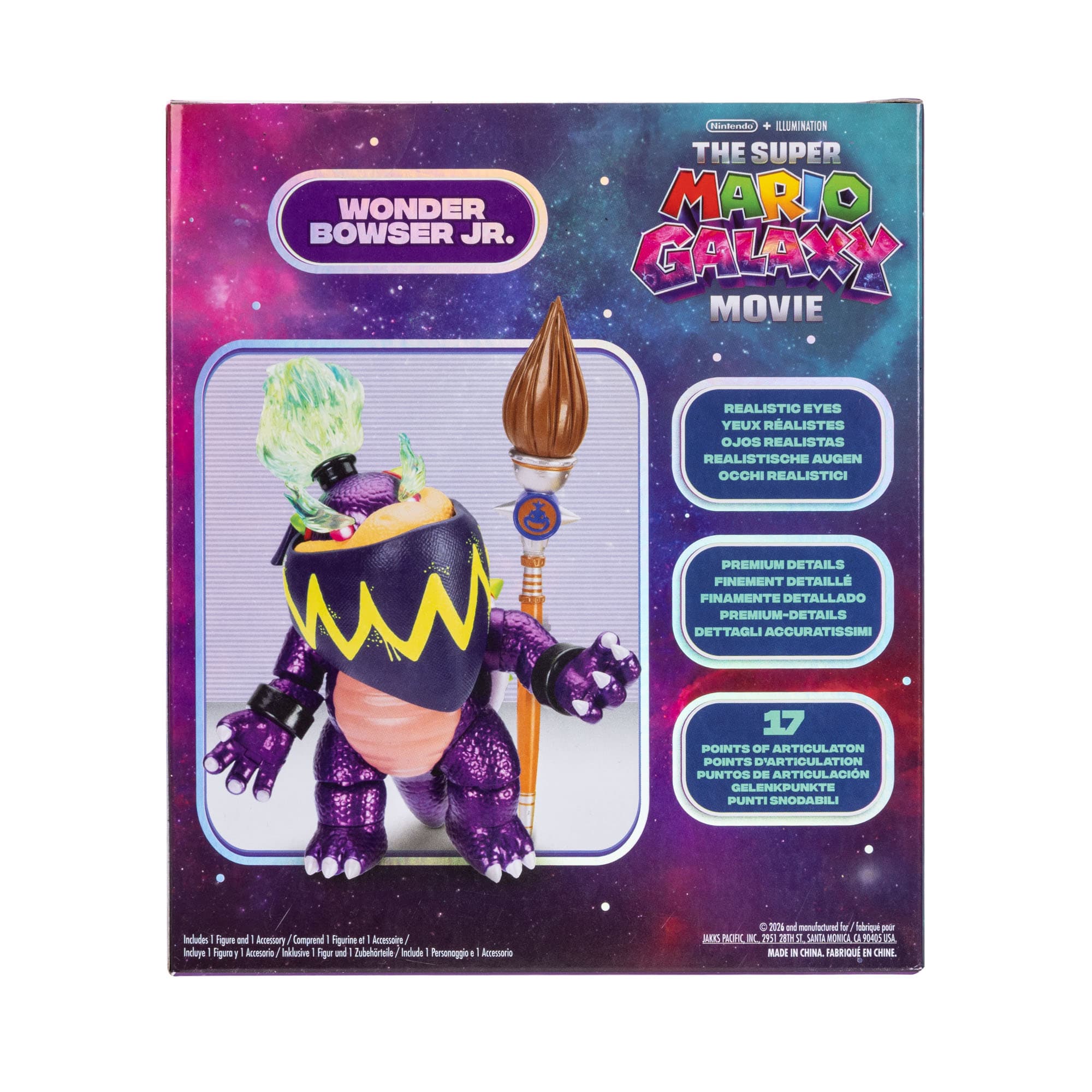 Sammle deine Lieblingscharaktere aus der „Super Mario Galaxy Movie 13 cm-Figurenserie! Jede 13 cm große Figur ist vom Film inspiriert und besticht durch hochwertige Details wie realistische Augen und 10–22 Bewegungspunkte. Jede Figur kommt mit einem filmbezogenen Accessoire und wird in einer Fensterbox präsentiert. Die erste Welle umfasst Mario, Yoshi, Rosalina und Bowser Jr. Sammle sie alle!