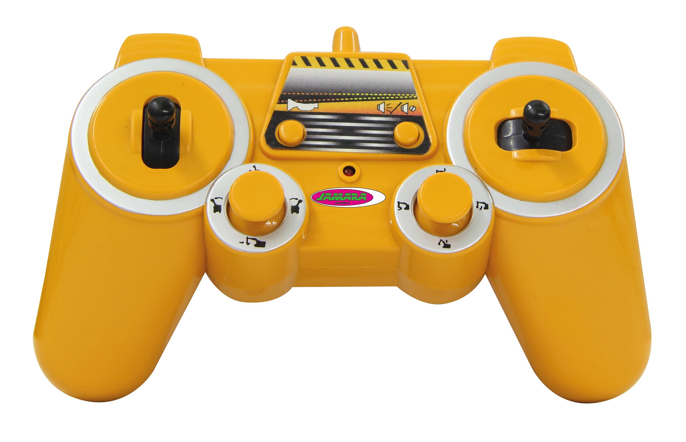 | Besonderheiten | • 2,4 GHz für Mehrspielerbetrieb • Entladen • Aufladen • Jedes Gelenk einzeln steuerbar • Realistischer Motorsound, abschaltbar • Realistische Funktionen • Hupe • 660 ° Turmdrehung • Turmdrehung im und gegen den Uhrzeigersinn • Auto-Standby-Modus • Rückfahrwarnsound • Metallschaufel |