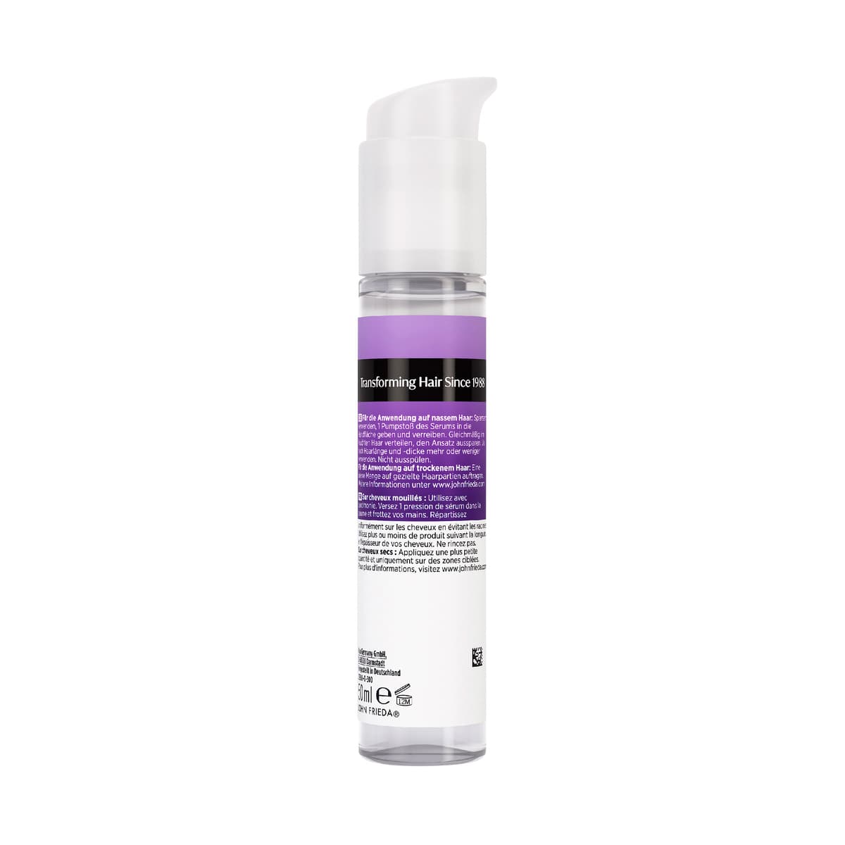 Frizz Ease Die Lösung für frizz-freies Haar – seit 1988. Frizz Ease schützt vor Frizz und verleiht dem Haar geschmeidigen Glanz, spürbare Weichheit und langanhaltende Kontrolle. Individuell für dich Bei hoher Luftfeuchtigkeit, nach dem Föhnen, nach dem Sport oder im Regen – wo Frizz auch auftaucht, Frizz Ease bändigt dein Haar. Warum Frizz Ease? So wirkt es Seit über 30 Jahren hilft Frizz Ease dabei, Frizz souverän zu kontrollieren. Wissenschaftlich fundiert, saloninspiriert – für glatteres Haar, auf das du dich verlassen kannst. 1. Glättet Frizz Sofort sichtbare Ergebnisse mit Kontrolle den ganzen Tag. 2. Verstärkt Glanz Verleiht brillanten Glanz und bändigt fliegende Härchen. 3. Schützt vor Feuchtigkeit Wetterfest bis zu 72 Stunden. JOHN FRIEDA – IKONISCH SEIT 1988 Haare sind niemals einfach nur Haare. Sie stehen für Ausdruck, Selbstbewusstsein, Individualität – und die Kraft, sich jeden Tag als die beste Version seiner selbst zu fühlen. Haare können die Stimmung eines Tages im Handumdrehen verändern. Wir verstehen das. Deshalb sind wir jeden Tag aufs Neue inspiriert, Salonqualität direkt zu dir nach Hause zu bringen. 1988, in einem Salon im Westen Londons, entfachte die Faszination eines Mannes für Haare etwas Größeres. Alltägliche Looks wurden zu kulturellen Momenten. John Frieda entwickelte sich von einem Namen aus der Nachbarschaft zu einer globalen Bewegung – und die ersten Produktikonen bewiesen es eindrucksvoll: die "Thickening Lotion", die feinem Haar die Fülle verlieh, die es verdient, und das Frizz-Ease Serum, das widerspenstiges Haar endgültig von Frizz befreite. Keine leeren Versprechen – sondern echte Salonergebnisse, mühelos für alle, überall. Unsere Mission ist unverändert, doch unsere Lösungen sind präziser denn je. In Zusammenarbeit mit Stylist:innen, Haarpflegeexpert:innen und führenden Forschungszentren – alle mit jahrzehntelanger Erfahrung – vereinen wir Wissenschaft und Salon-Expertise, um gezielte Haarpflege-Lösungen zu entwickeln, die auf individuelle Bedürfnisse abgestimmt sind. Haare sind unsere Leidenschaft. Ob glatte, frizzfreie Perfektion, voluminöse Wellen oder ein noch strahlenderes Blond – wir bieten weltweit Salonqualität für echte Haartransformationen und erfüllen individuelle Bedürfnisse in Echtzeit. Bei John Frieda glauben wir daran, dass kein Moment im Leben zu klein oder zu unbedeutend für großartiges Haar ist. Oder für das Selbstbewusstsein, das damit einhergeht. Wo immer du bist und was immer du tust – mit John Frieda erlebst du jeden Tag dieses unverwechselbare Gefühl von 'Salon-Attitude'.