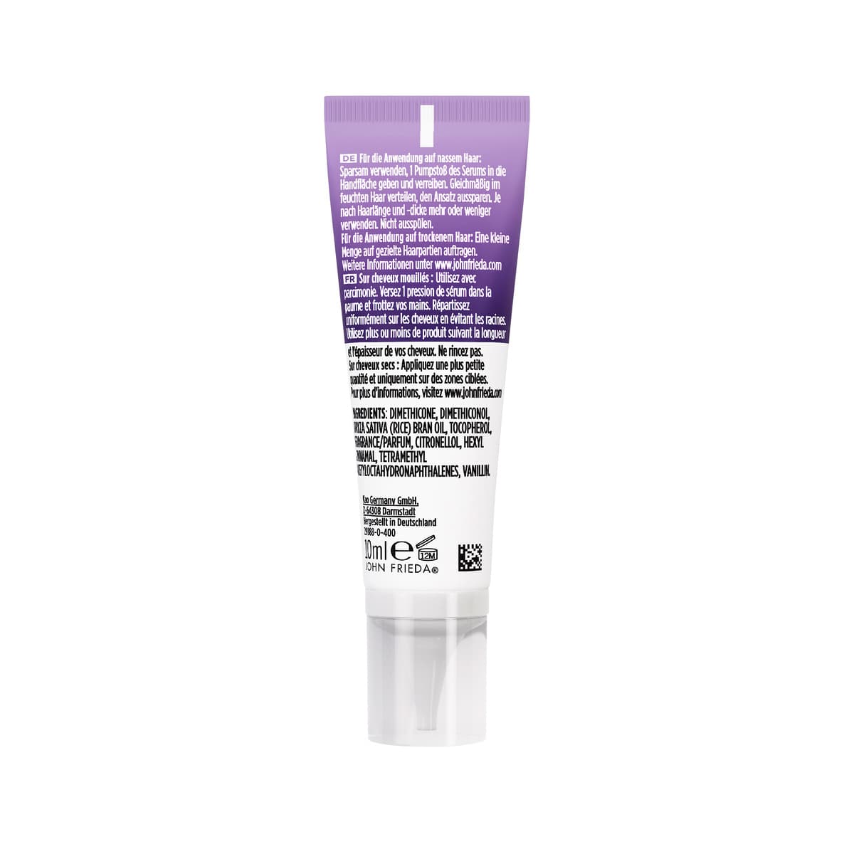 Frizz Ease Die Lösung für frizz-freies Haar – seit 1988. Frizz Ease schützt vor Frizz und verleiht dem Haar geschmeidigen Glanz, spürbare Weichheit und langanhaltende Kontrolle. Individuell für dich Bei hoher Luftfeuchtigkeit, nach dem Föhnen, nach dem Sport oder im Regen – wo Frizz auch auftaucht, Frizz Ease bändigt dein Haar. Warum Frizz Ease? So wirkt es Seit über 30 Jahren hilft Frizz Ease dabei, Frizz souverän zu kontrollieren. Wissenschaftlich fundiert, saloninspiriert – für glatteres Haar, auf das du dich verlassen kannst. 1. Glättet Frizz Sofort sichtbare Ergebnisse mit Kontrolle den ganzen Tag. 2. Verstärkt Glanz Verleiht brillanten Glanz und bändigt fliegende Härchen. 3. Schützt vor Feuchtigkeit Wetterfest bis zu 72 Stunden. JOHN FRIEDA – IKONISCH SEIT 1988 Haare sind niemals einfach nur Haare. Sie stehen für Ausdruck, Selbstbewusstsein, Individualität – und die Kraft, sich jeden Tag als die beste Version seiner selbst zu fühlen. Haare können die Stimmung eines Tages im Handumdrehen verändern. Wir verstehen das. Deshalb sind wir jeden Tag aufs Neue inspiriert, Salonqualität direkt zu dir nach Hause zu bringen. 1988, in einem Salon im Westen Londons, entfachte die Faszination eines Mannes für Haare etwas Größeres. Alltägliche Looks wurden zu kulturellen Momenten. John Frieda entwickelte sich von einem Namen aus der Nachbarschaft zu einer globalen Bewegung – und die ersten Produktikonen bewiesen es eindrucksvoll: die "Thickening Lotion", die feinem Haar die Fülle verlieh, die es verdient, und das Frizz-Ease Serum, das widerspenstiges Haar endgültig von Frizz befreite. Keine leeren Versprechen – sondern echte Salonergebnisse, mühelos für alle, überall. Unsere Mission ist unverändert, doch unsere Lösungen sind präziser denn je. In Zusammenarbeit mit Stylist:innen, Haarpflegeexpert:innen und führenden Forschungszentren – alle mit jahrzehntelanger Erfahrung – vereinen wir Wissenschaft und Salon-Expertise, um gezielte Haarpflege-Lösungen zu entwickeln, die auf individuelle Bedürfnisse abgestimmt sind. Haare sind unsere Leidenschaft. Ob glatte, frizzfreie Perfektion, voluminöse Wellen oder ein noch strahlenderes Blond – wir bieten weltweit Salonqualität für echte Haartransformationen und erfüllen individuelle Bedürfnisse in Echtzeit. Bei John Frieda glauben wir daran, dass kein Moment im Leben zu klein oder zu unbedeutend für großartiges Haar ist. Oder für das Selbstbewusstsein, das damit einhergeht. Wo immer du bist und was immer du tust – mit John Frieda erlebst du jeden Tag dieses unverwechselbare Gefühl von 'Salon-Attitude'.