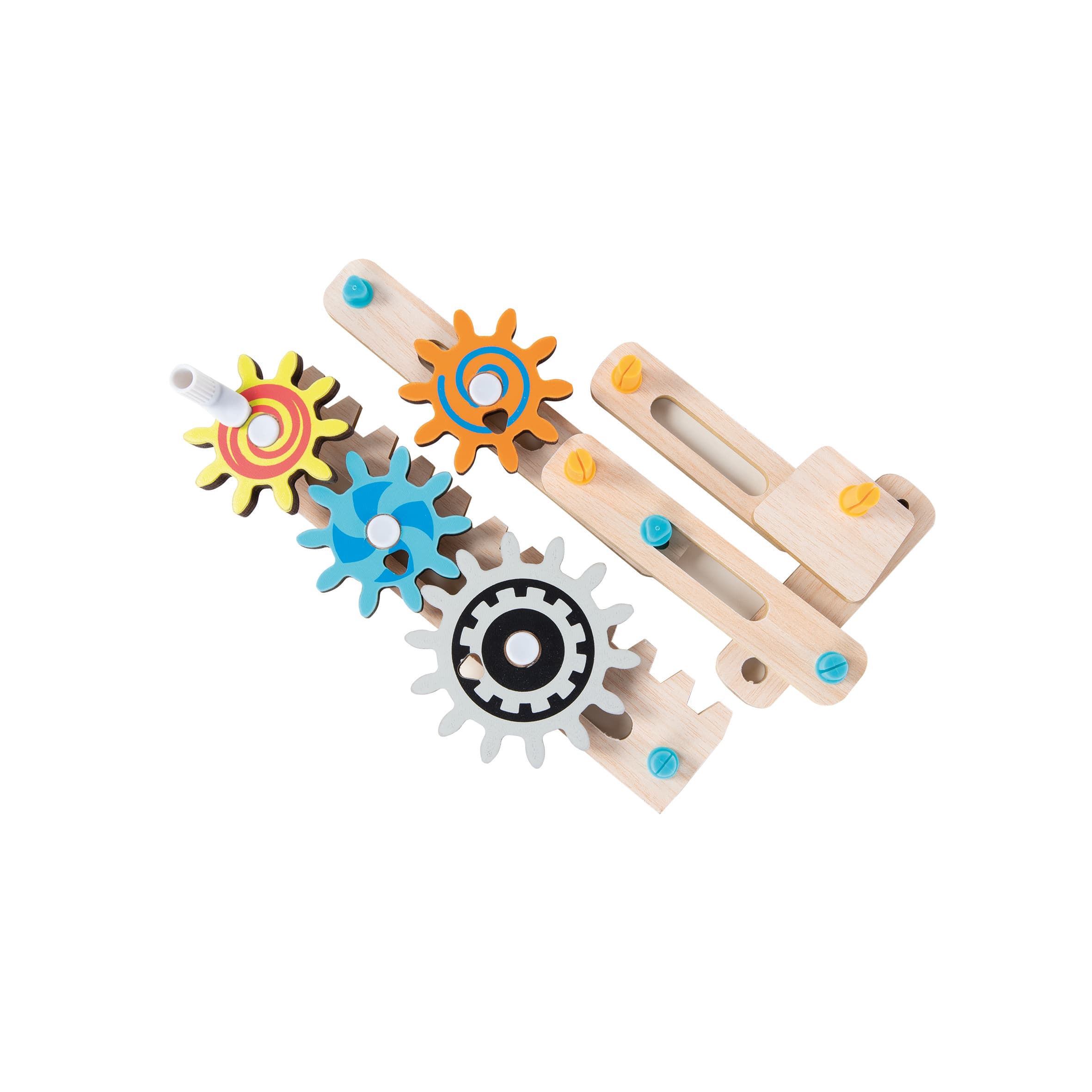 Für das Holz-Zahnrad-Puzzle können 4 verschiedene Motivkarten verwendet werden. Auf diesen können Zahnräder richtig angeordnet und in Bewegung versetzt werden mit Holzachsen, unterschiedlichen Zahnrädern, einer Kurbel und Verbindungsstücken. Inhalt: 1 Lochbrett, 4 Themenkarten (Zug, Bagger, Feuerwehrauto, Stapler), 6 Holzachsen, 4 unterschiedliche Zahnräder, 1 Kurbel, 7 Verbindungsstücke.