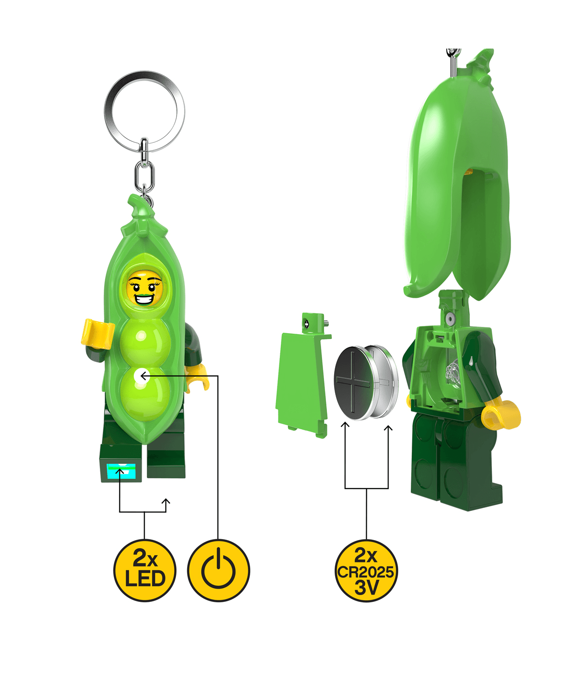 Schlüsselanhänger im LEGO-Minifiguren-Design „Erbsenschoten-Kostüm“