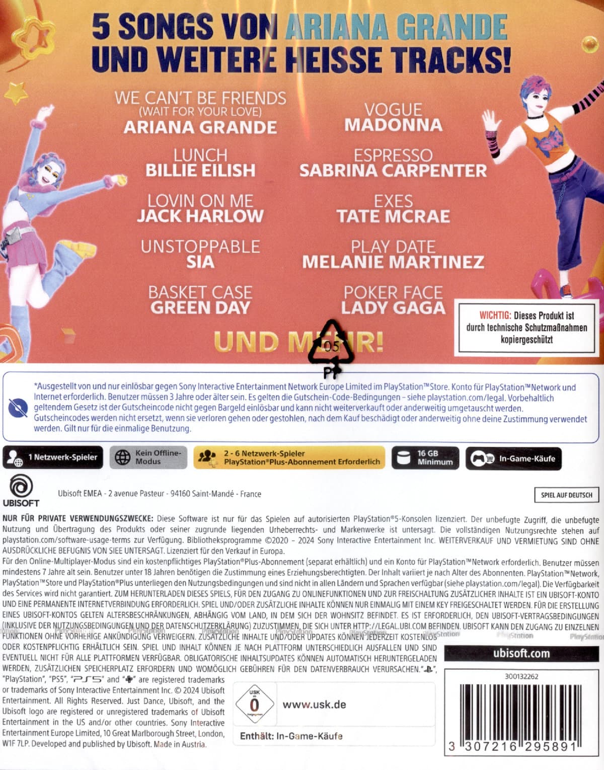 *Just Dance+ ist ein Streamingdienst, der über Just Dance 2023 Edition, Just Dance 2024 Edition und Just Dance 2025 Edition genutzt werden kann und Zugriff auf zusätzliche Songs gewährt.