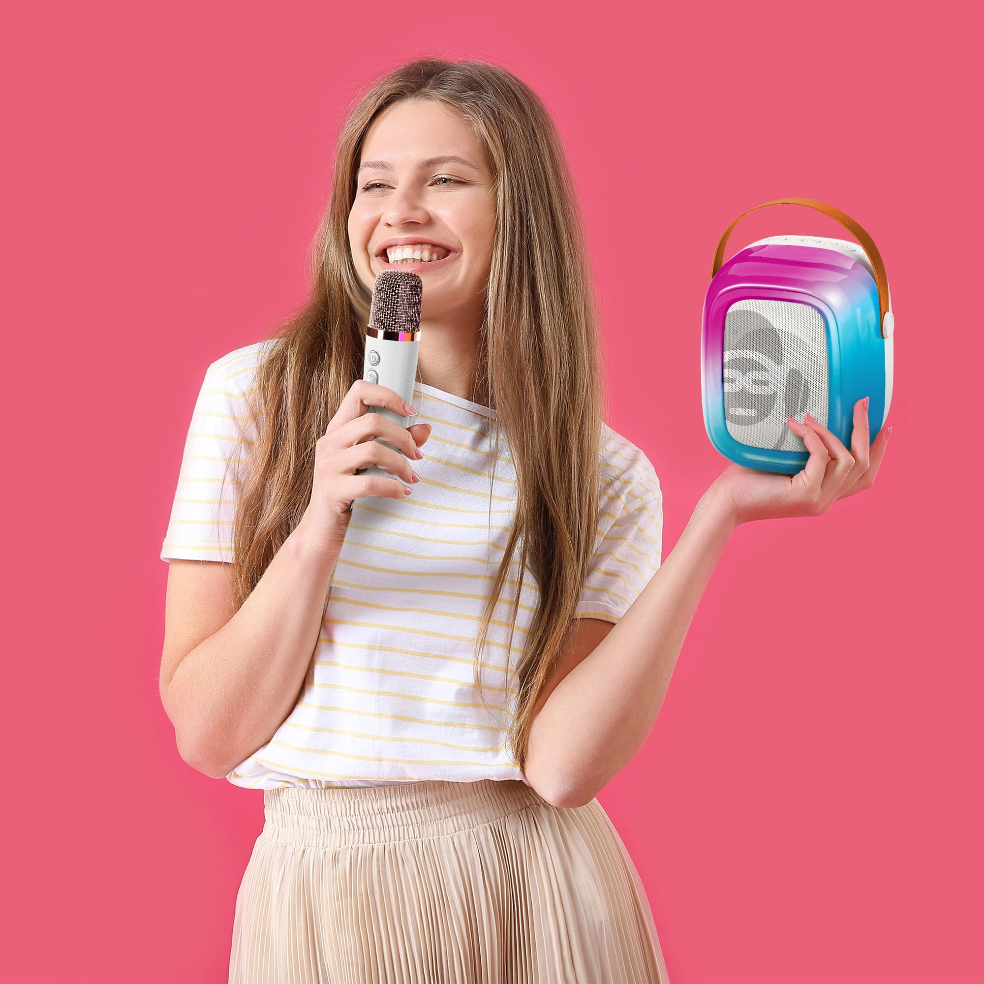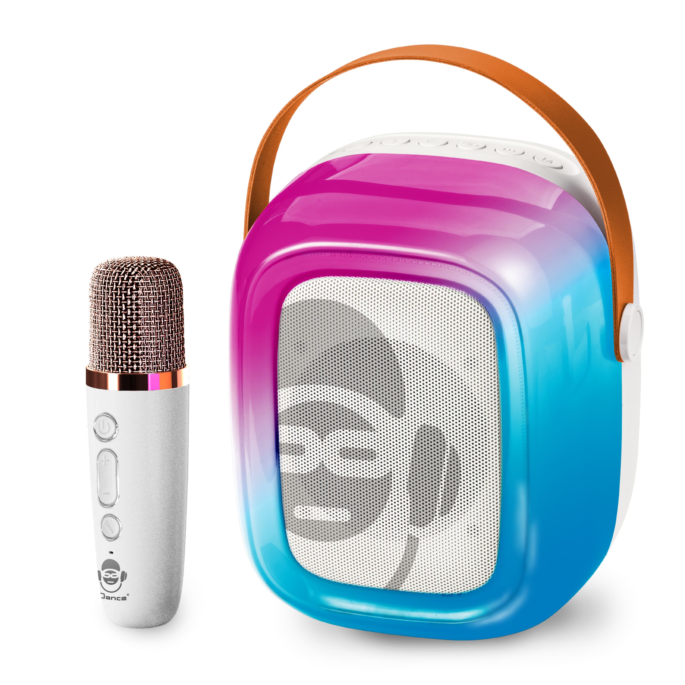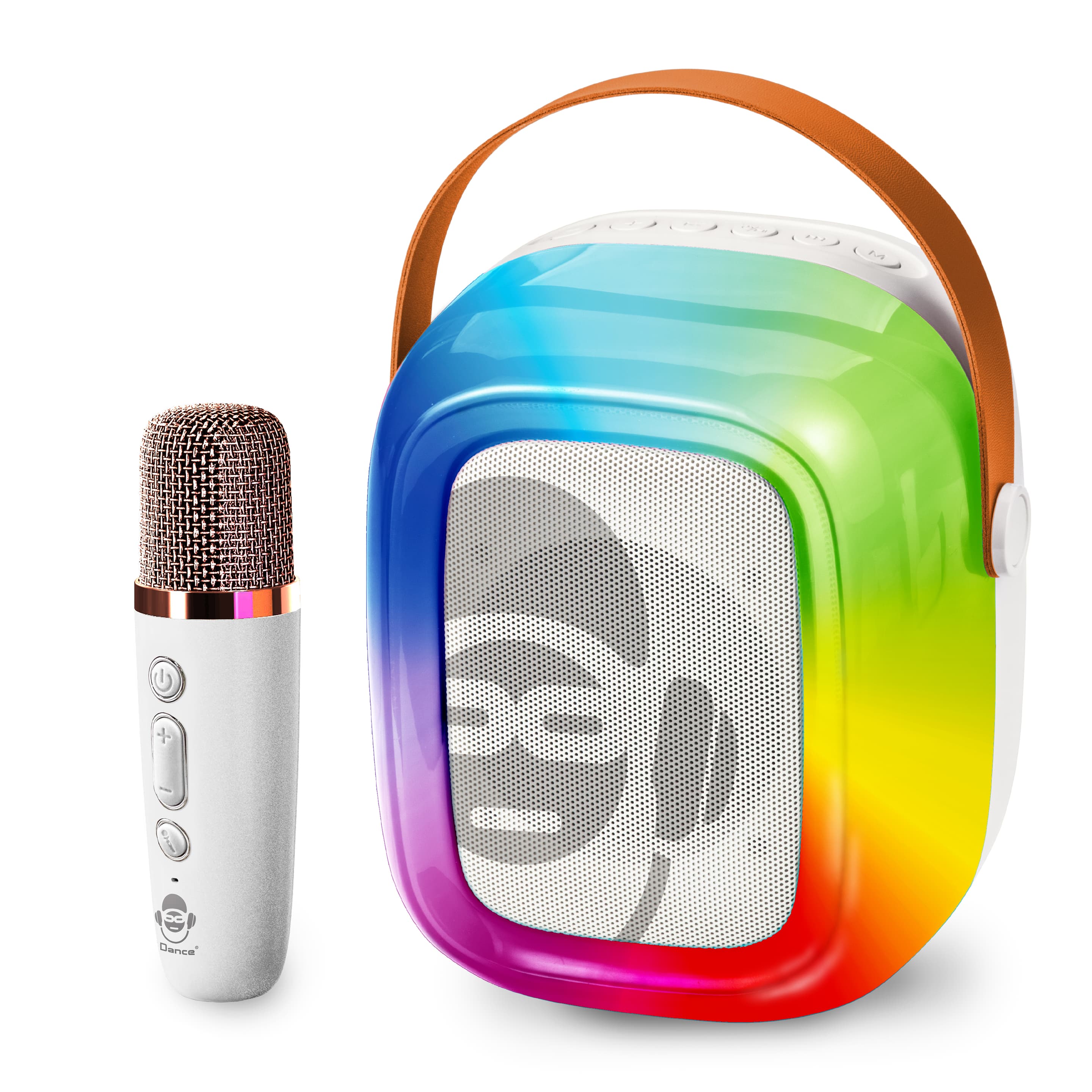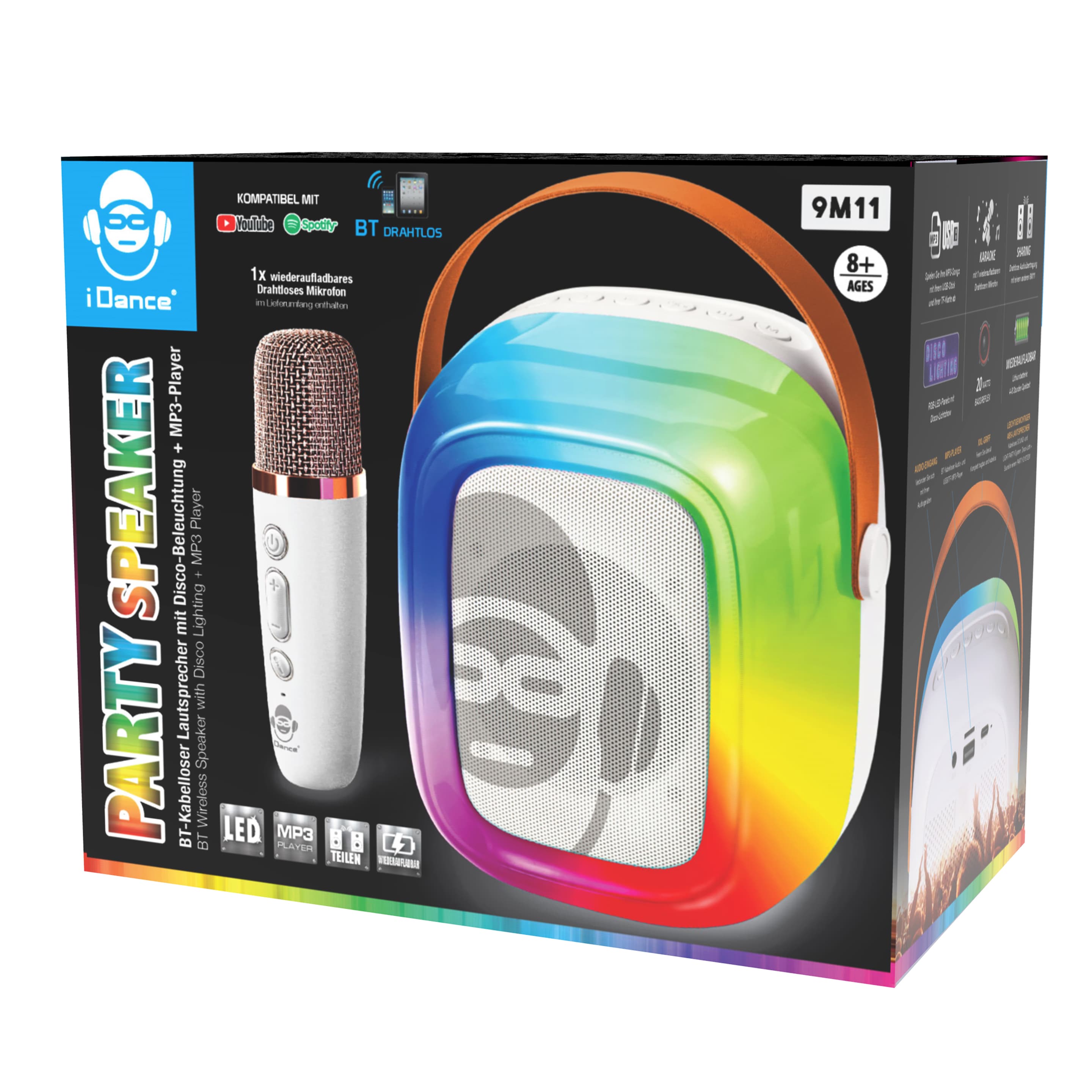 | Besonderheiten | Kabelloses BT zum Streamen von Audio von lhrem Mobiltelefon oder Tablet RGB-Disco-Beleuchtung mit Party-Modus 1x wiederaufladbares kabelloses Mikrofon enthalten |