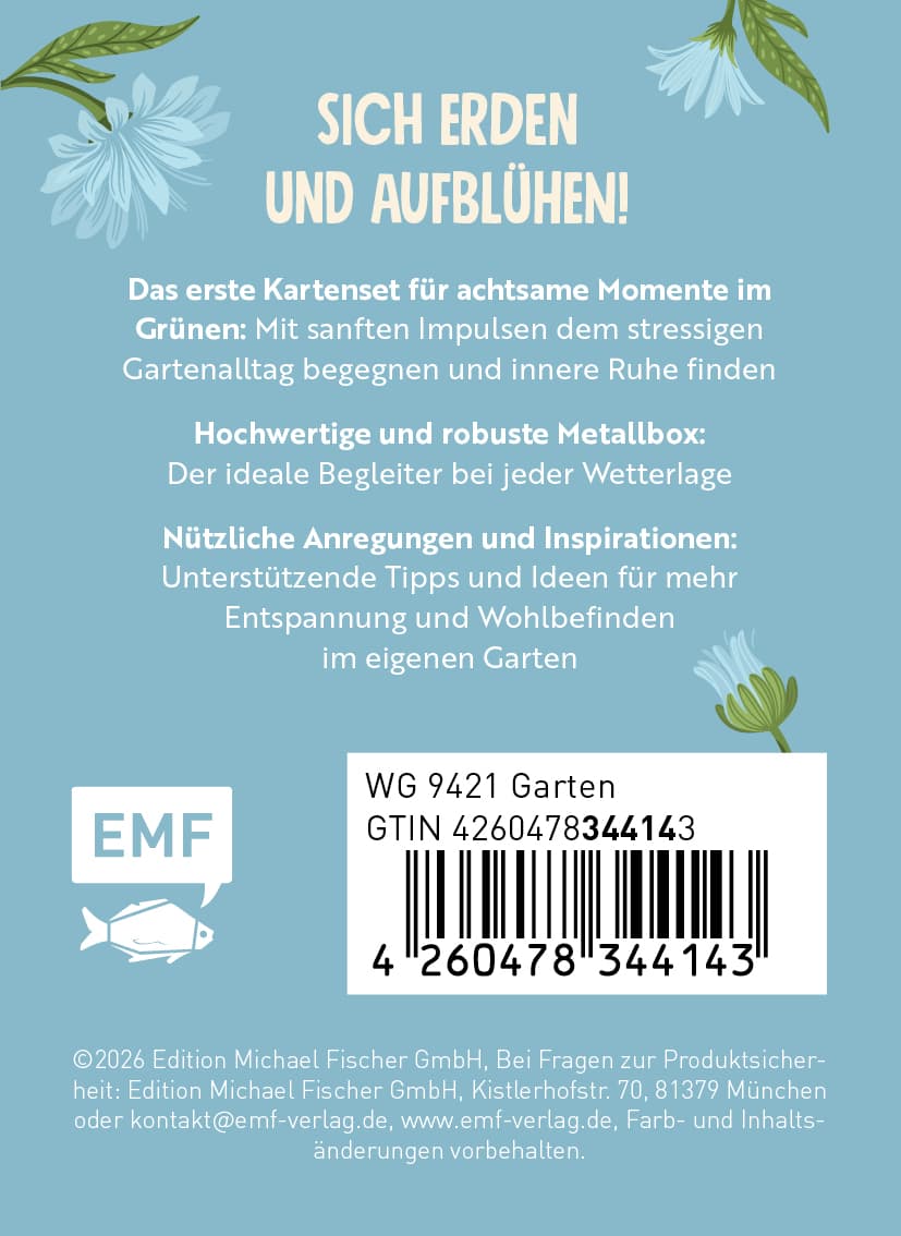 Dieses Kartenset wird mehr Leichtigkeit in den Gartenalltag bringen und deine innere Balance zurückbringen. Du wirst lernen, deine Aufgaben zu priorisieren, deine Umgebung bewusster wahrzunehmen und durch kleine Achtsamkeitsübungen mehr Entspannung und Lebensfreude zu spüren. Schon bald wirst du dich leichter, glücklicher und rundum wohl fühlen!