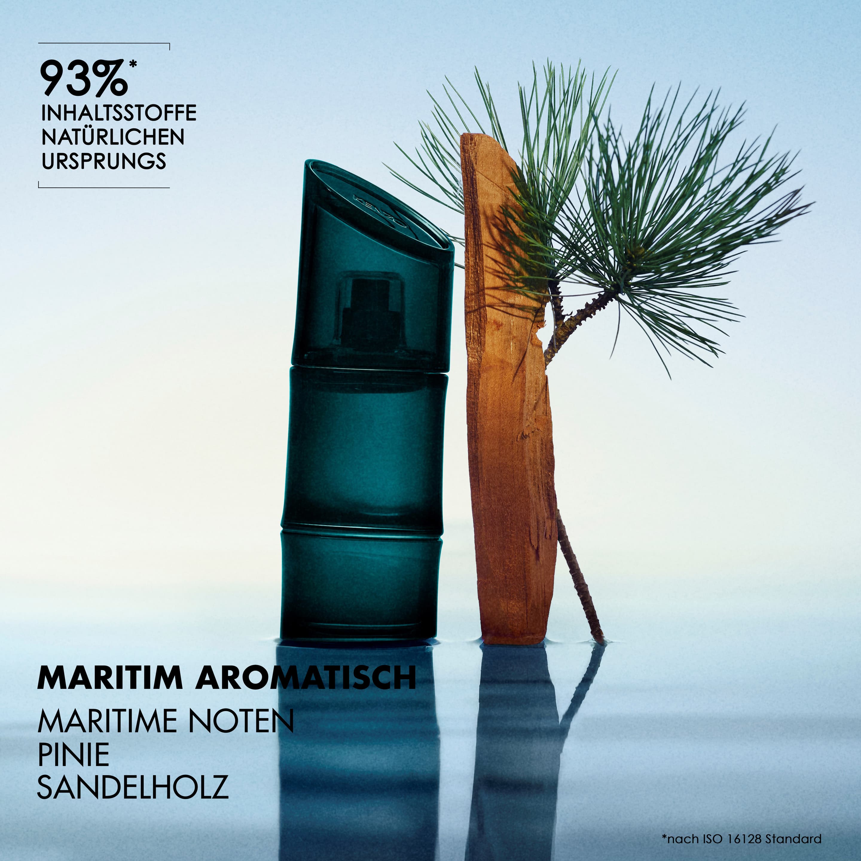 Kenzo feiert seinen zeitlosen Herrenduft, KENZO HOMME Eau de Toilette, mit einem neuen Design. Der Duft ist unverändert: Entdecke KENZO HOMME Eau de Toilette neu, ein zeitloses, holziges und maritimes Parfum, kreiert von Christian Matthieu. Die Frische des Meeresduftes kombiniert mit dem grünen und holzigen Duft von Kiefern und Sandelholz erinnert an einen Spaziergang am Meer entlang eines bewaldeten Weges. Ein belebender Duft, der die Haut wie ein Hauch von salziger Meeresluft umschmeichelt und erfrischt. Der neue tiefgrüne Flakon von KENZO HOMME ist eine Ode an die Poesie. Seine Form spiegelt die Stärke und Flexibilität von Bambus wider und sein Design steht ganz im Zeichen der Vertikalität. Die abgeschrägte Kappe erinnert an den Schnitt eines Katana, eines Samurai-Schwerts. Da KENZO sich für eine schönere Welt einsetzt, besteht der Flakon des KENZO HOMME Eau de Toilette aus 15% recyceltem Glas und reduziert sein Glasgewicht um 23%, um 10 ml zusätzlichen Duft* aufzunehmen. Das Design des Verschlusses wurde so konzipiert, dass 34% Plastik eingespart werden. Der Flakon ist von unbehandeltem Kraftkarton und einer Papierbox aus verantwortungsvollen Quellen umgeben und mit umweltfreundlichen Druckfarben bedruckt ist. Sei frei mit KENZO HOMME Eau de Toilette und verbinde dich wieder mit der Natur #ReconnectWithNature. *nur für die 110ml Größe.