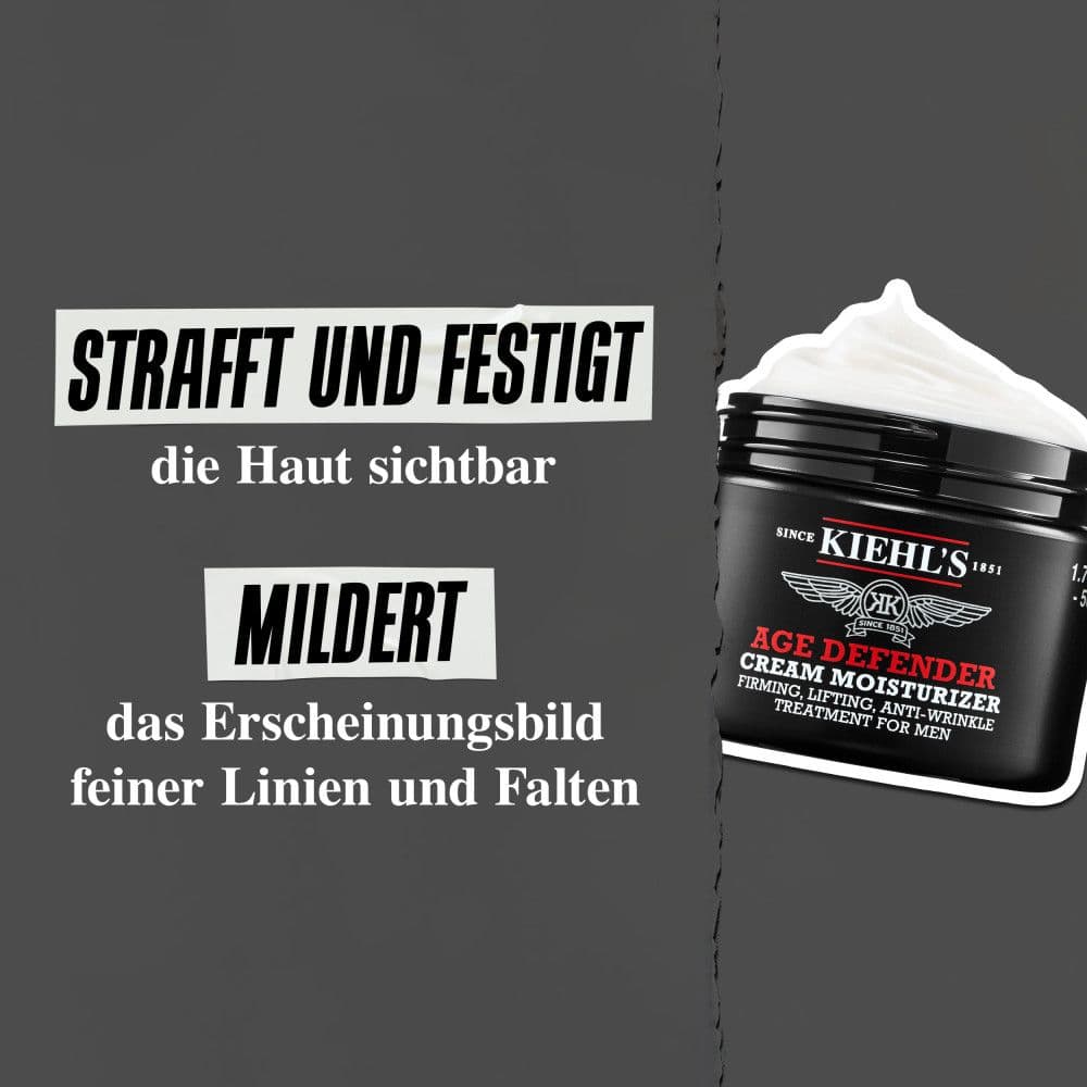 Der Age Defender Moisturizer ist eine wirkungsstarke Anti-Aging-Pflege für jede Männerhaut. Diese innovative Anti-Falten-Feuchtigkeitspflege festigt die Haut und hat einen„Lifting-Effekt“, der sich gleich zweifach bemerkbar macht, zum einen wird die Haut nachhaltig hydratisiert und wirkt dadurch deutlich frischer und belebter und zum anderen werden Fältchen und Falten sichtbar gestrafft. Zeichen der Hautalterung werden somit gemildert und die Gesichtskonturen wirken insgesamt definierter. Zudem erzielt die vitalisierende Anti-Age-Pflege eine sanft exfolierende Wirkung: Sie entfernt abgestorbene Hautzellen und enthüllt einen strahlenden, frischen Teint.
