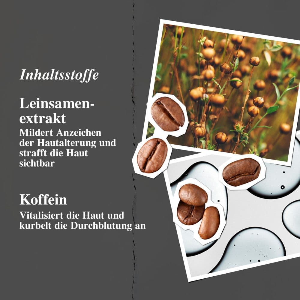 | Inhaltsstoffe | 685630 35 - INGREDIENTS: AQUA / WATER • GLYCERIN • DIMETHICONE • ALCOHOL DENAT. • SUCROSE STEARATE • ORBIGNYA OLEIFERA SEED OIL • PENTAERYTHRITYL TETRAETHYLHEXANOATE • THEOBROMA CACAO SEED BUTTER / COCOA SEED BUTTER • POLY C10-30 ALKYL ACRYLATE • HYDROGENATED POLYISOBUTENE • OCTYLDODECANOL • STEARIC ACID • PALMITIC ACID • SODIUM POLYACRYLATE • PHENOXYETHANOL • CAPRYLOYL SALICYLIC ACID • PVP • PARFUM / FRAGRANCE • ACRYLATES/C10-30 ALKYL ACRYLATE CROSSPOLYMER • CHLORPHENESIN • XANTHAN GUM • SODIUM HYDROXIDE • LIMONENE • HYDROLYZED LINSEED EXTRACT • DIMETHICONOL • TOCOPHEROL • CAFFEINE • PENTAERYTHRITYL TETRA-DI-T-BUTYL HYDROXYHYDROCINNAMATE • GLYCINE SOJA PROTEIN / SOYBEAN PROTEIN • MYRISTIC ACID • ASCORBYL GLUCOSIDE • ADENOSINE • VACCINIUM MYRTILLUS FRUIT EXTRACT • SODIUM BENZOATE • CAPRYLYL GLYCOL • SACCHARUM OFFICINARUM EXTRACT / SUGARCANE EXTRACT • SODIUM COCOYL GLUTAMATE • LINALOOL • ETHYLHEXYLGLYCERIN • CITRUS AURANTIUM DULCIS FRUIT EXTRACT / ORANGE FRUIT EXTRACT • CITRUS LIMON FRUIT EXTRACT / LEMON FRUIT EXTRACT • POTASSIUM SORBATE • ACER SACCHARUM EXTRACT / SUGAR MAPLE EXTRACT • CITRAL (F.I.L. D222376/1). |