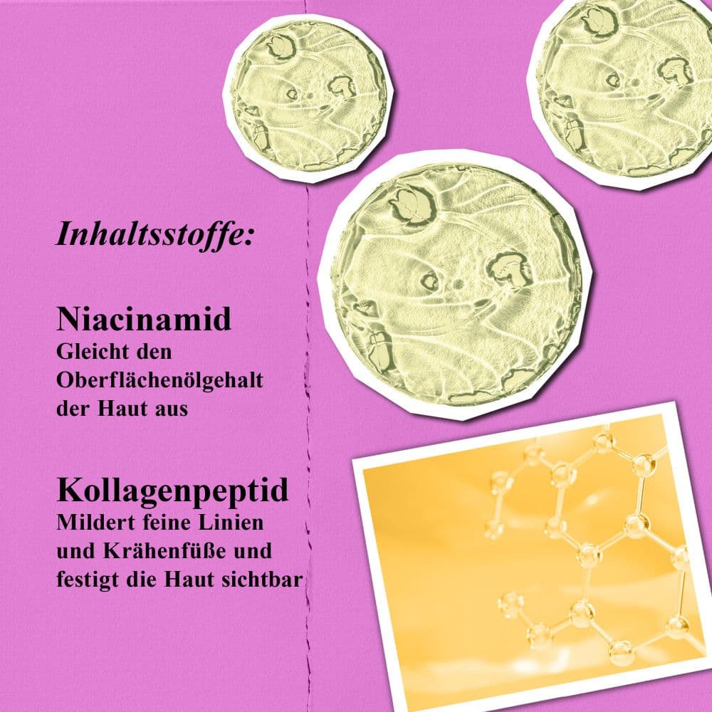 | Inhaltsstoffe | 685861 19 - INGREDIENTS: AQUA / WATER • DIMETHICONE • GLYCERIN • HYDROXYPROPYL TETRAHYDROPYRANTRIOL • NIACINAMIDE • ALCOHOL DENAT. • PROPYLENE GLYCOL • SILICA • PROPANEDIOL • POLYSILICONE-11 • PEG-10 DIMETHICONE • DI-C12-13 ALKYL MALATE • VACCINIUM MYRTILLUS SEED OIL • DIMETHICONE/PEG-10/15 CROSSPOLYMER • HYDROXYETHYLPIPERAZINE ETHANE SULFONIC ACID • BIS-PEG/PPG-16/16 PEG/PPG-16/16 DIMETHICONE • POTASSIUM CETYL PHOSPHATE • CARBOMER • CETEARETH-20 • CAFFEINE • SODIUM CITRATE • SODIUM HYALURONATE • SODIUM HYDROXIDE • SODIUM LACTATE • PALMITOYL TETRAPEPTIDE-7 • PALMITOYL TRIPEPTIDE-1 • ADENOSINE • AMMONIUM POLYACRYLOYLDIMETHYL TAURATE • BORON NITRIDE • DIPROPYLENE GLYCOL • CAPRYLIC/CAPRIC TRIGLYCERIDE • CAPRYLYL GLYCOL • TRISODIUM ETHYLENEDIAMINE DISUCCINATE • POLYSORBATE 20 • ACRYLATES/C10-30 ALKYL ACRYLATE CROSSPOLYMER • BUTYLENE GLYCOL • TOCOPHEROL • PENTAERYTHRITYL TETRA-DI-T-BUTYL HYDROXYHYDROCINNAMATE • CHLORHEXIDINE DIGLUCONATE • CHLORPHENESIN (F.I.L. D277787/1). |