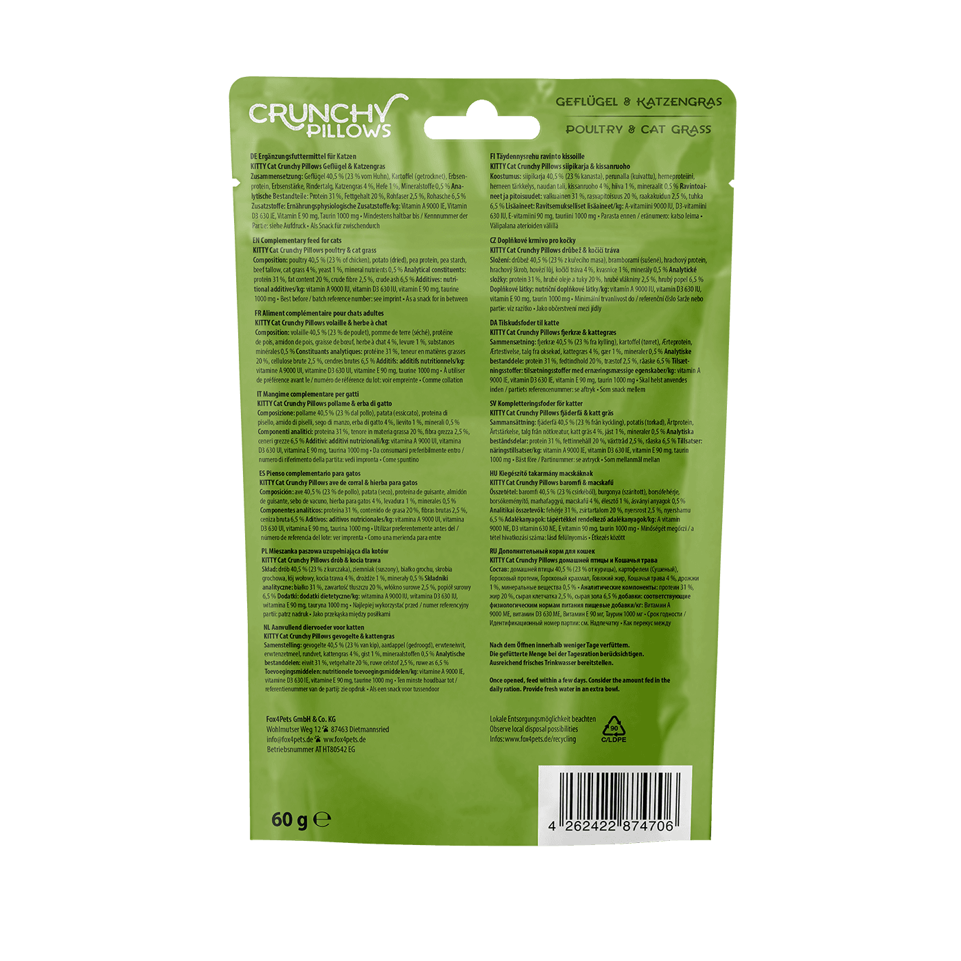 KITTY Cat Katzensnack Crunchy Pillows, Geflügel & Katzengras