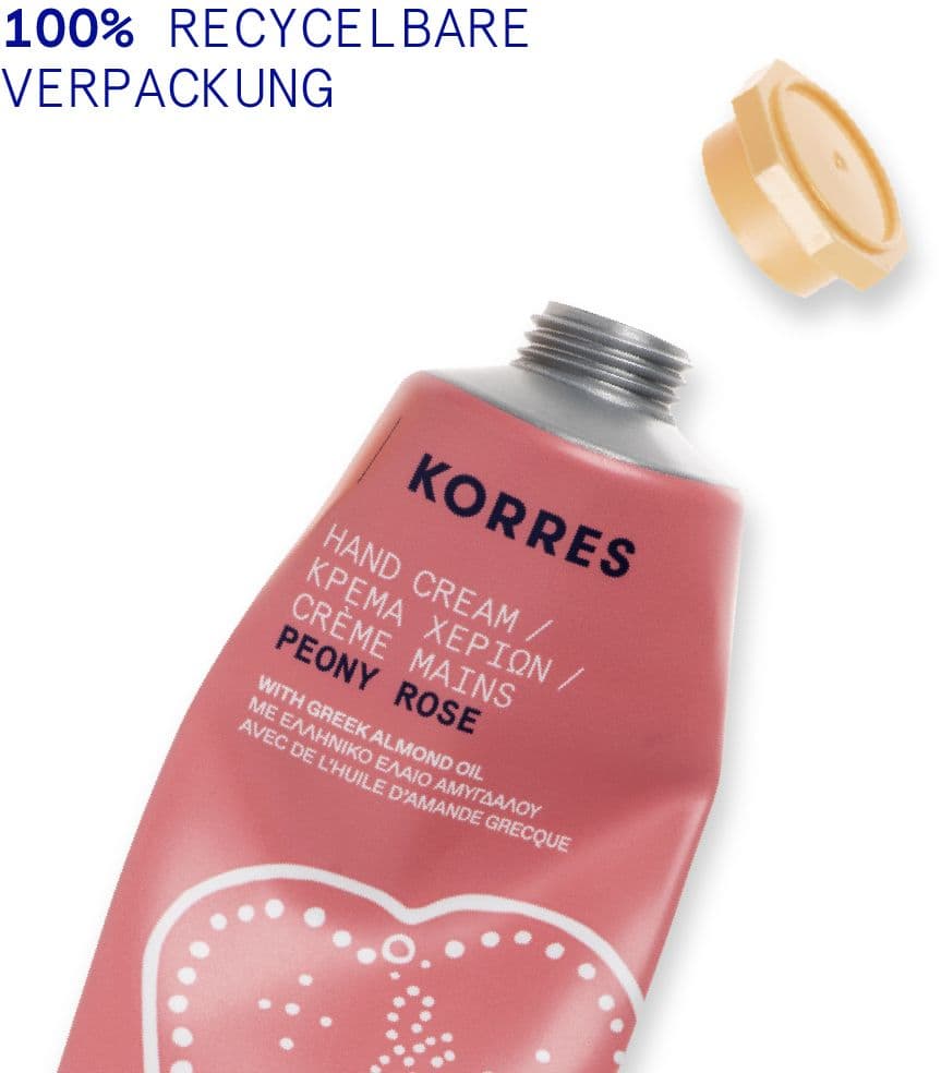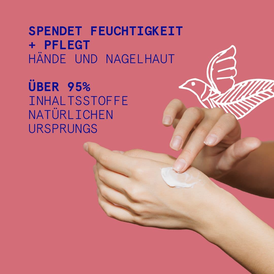 Feuchtigkeitsspendende Creme mit griechischem Süßmandelöl. Macht Hände und Nagelhaut geschmeidig. Zarte Noten von Pfingstrosen und Rosen.