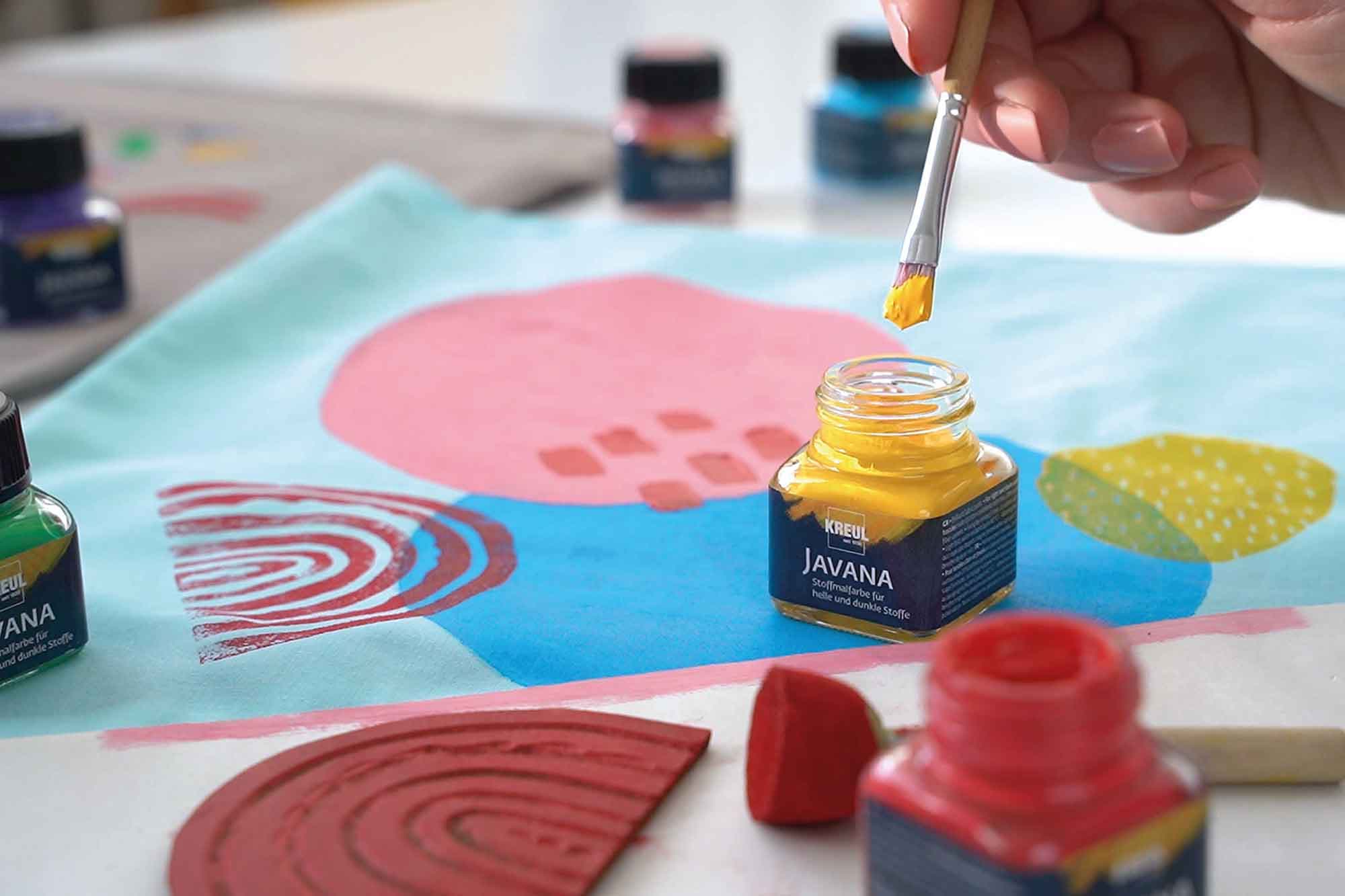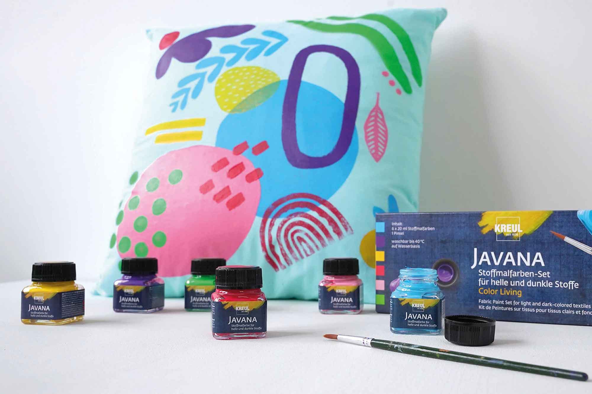 Kissen, Plaids und Shopper aufgepasst: Jetzt kommt ein Frischekick in schicken Farbtönen. Das KREUL Javana Stoffmalfarben für helle und dunkle Stoffe Set Color Living ist perfekt, um Textilien in fröhlichem Design zu gestalten. Alle Farbtöne harmonieren miteinander und bringen Stoffe zum Strahlen. Die cremigen Stoffmalfarben sind stark deckend und eignen sich perfekt zum Drucken, Schablonieren oder Bemalen von Textilien. Nach der Fixierung sind die Designs lichtecht und waschbeständig bis 40°C.