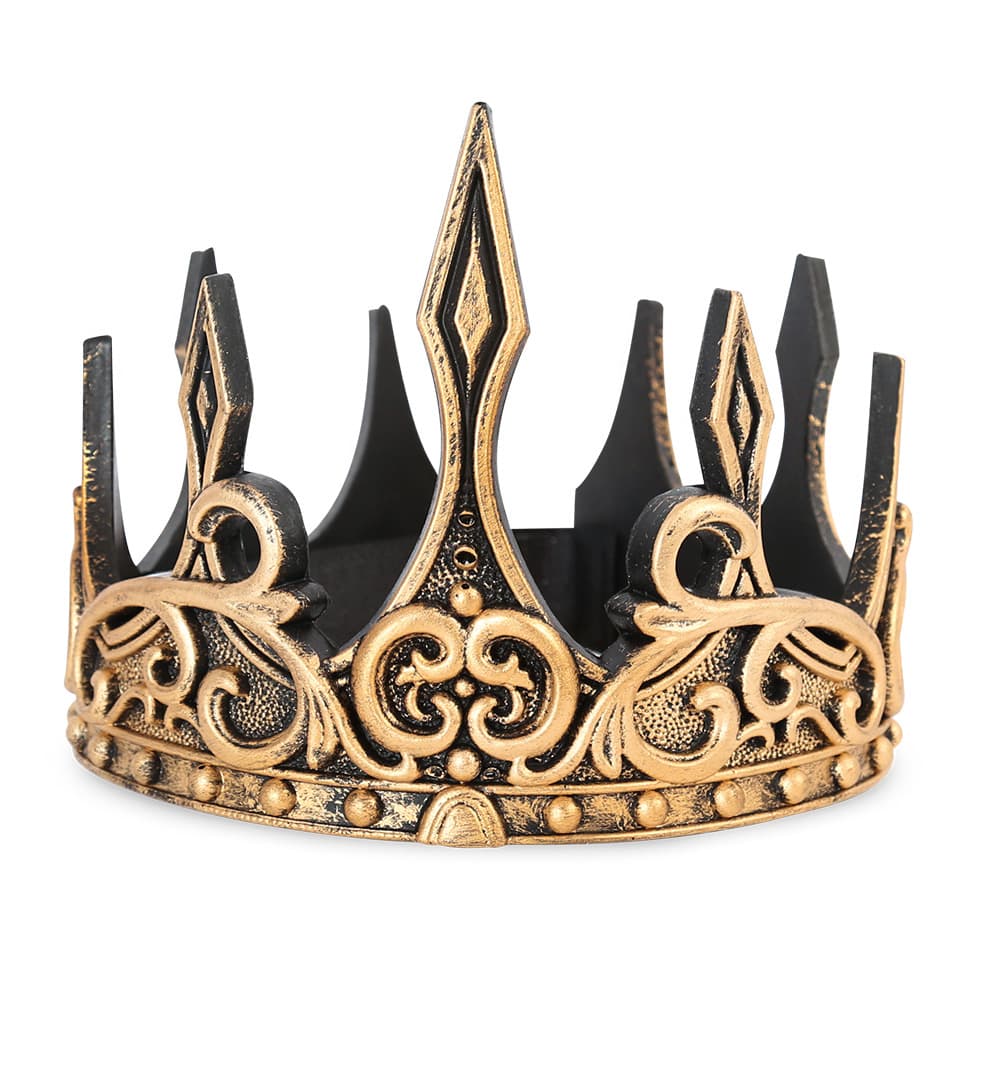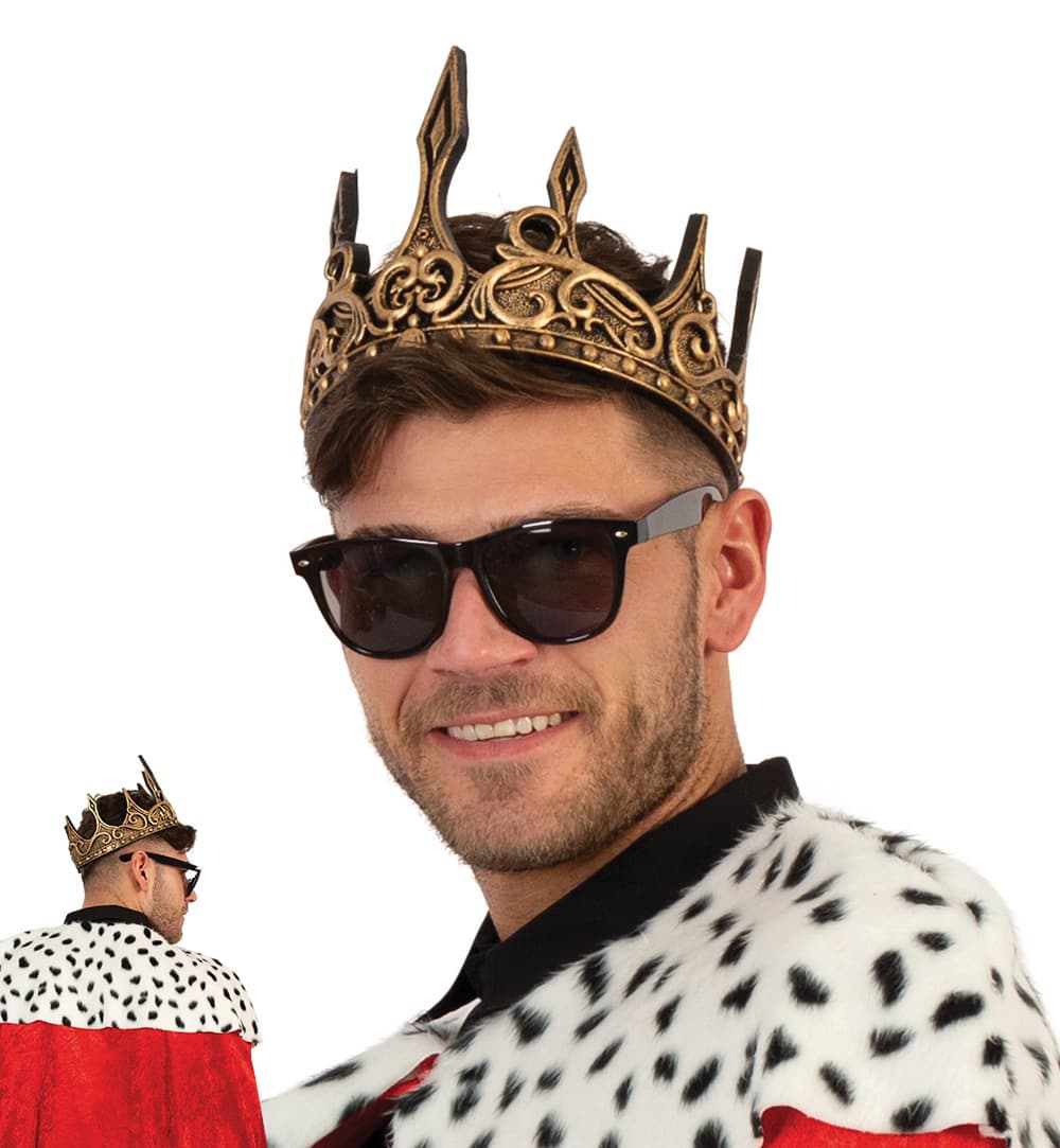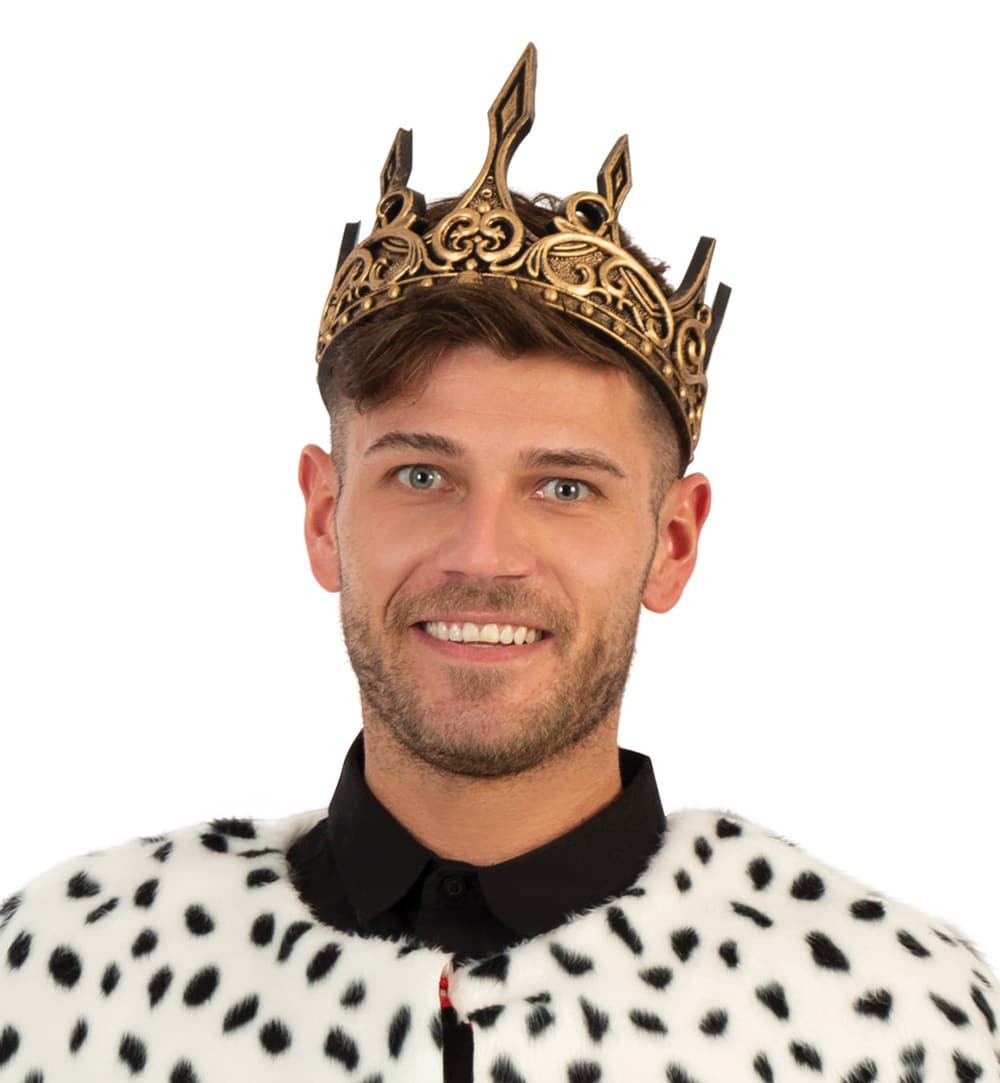 Eine edle Krone, wie sie einem wahren Herrscher geziemt, die darf natürlich bei allerlei königlichen Kostümen nicht fehlen. Das standesgemäße Accessoire besteht aus dickem Weichplastik und ist dadurch absolut bruchsicher und solide. Mit dem Klettverschluss lässt sich die Krone auf den gewünschten Kopfumfang einstellen und trägt sich besonders bequem.
