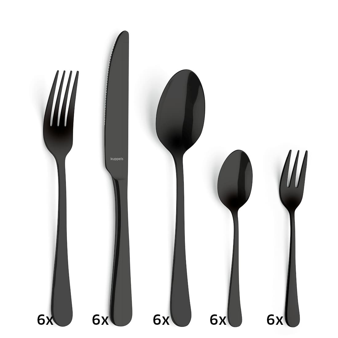 - Inhalt: 6 Kaffeelöffel, 6 Kuchengabeln, 6 Menügabeln, 6 Menülöffel, 6 Menümesser
